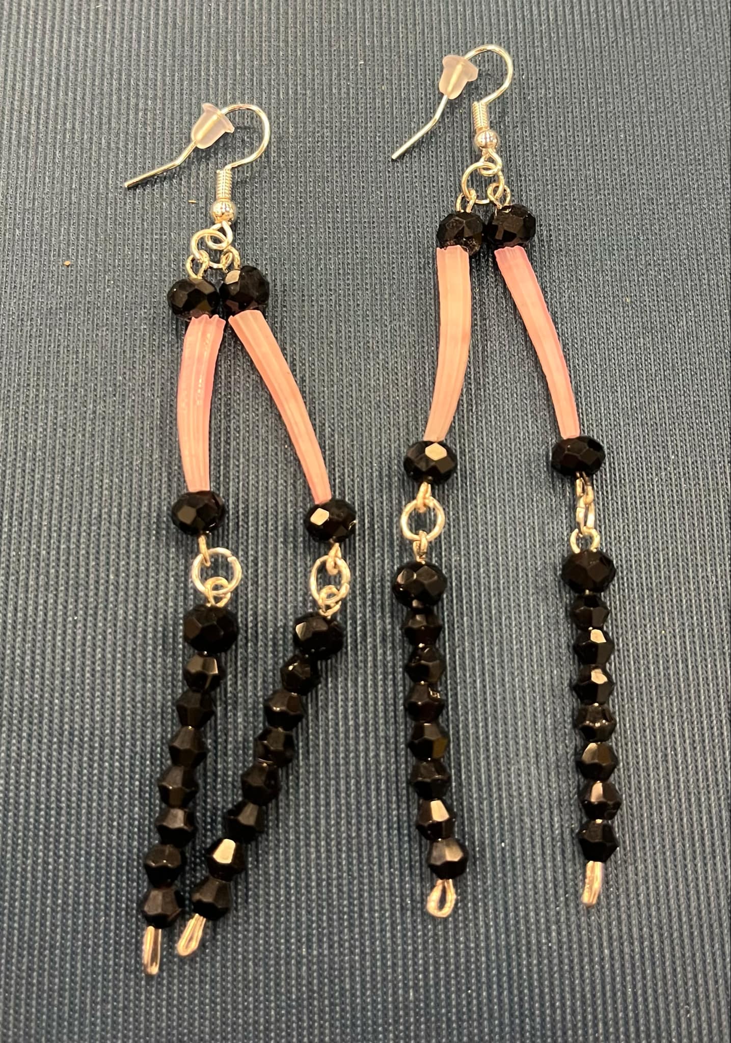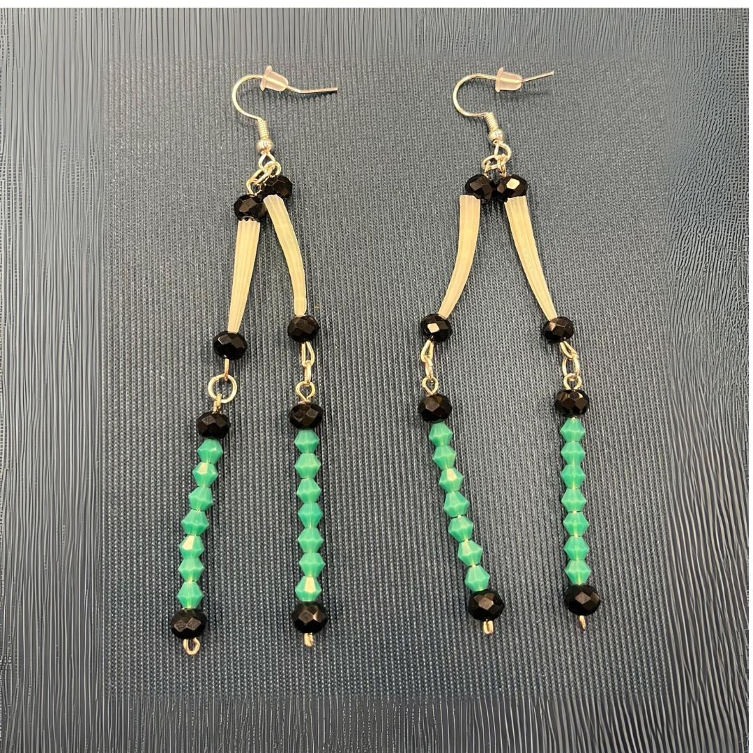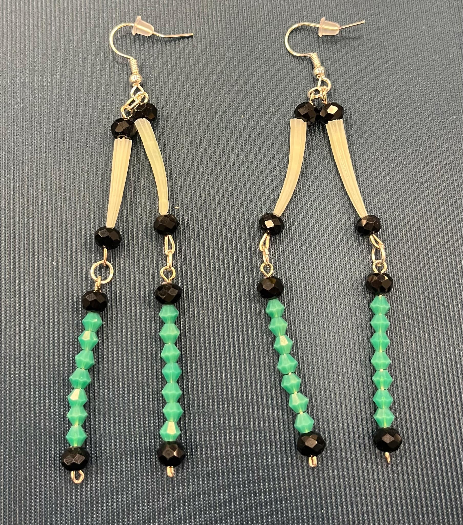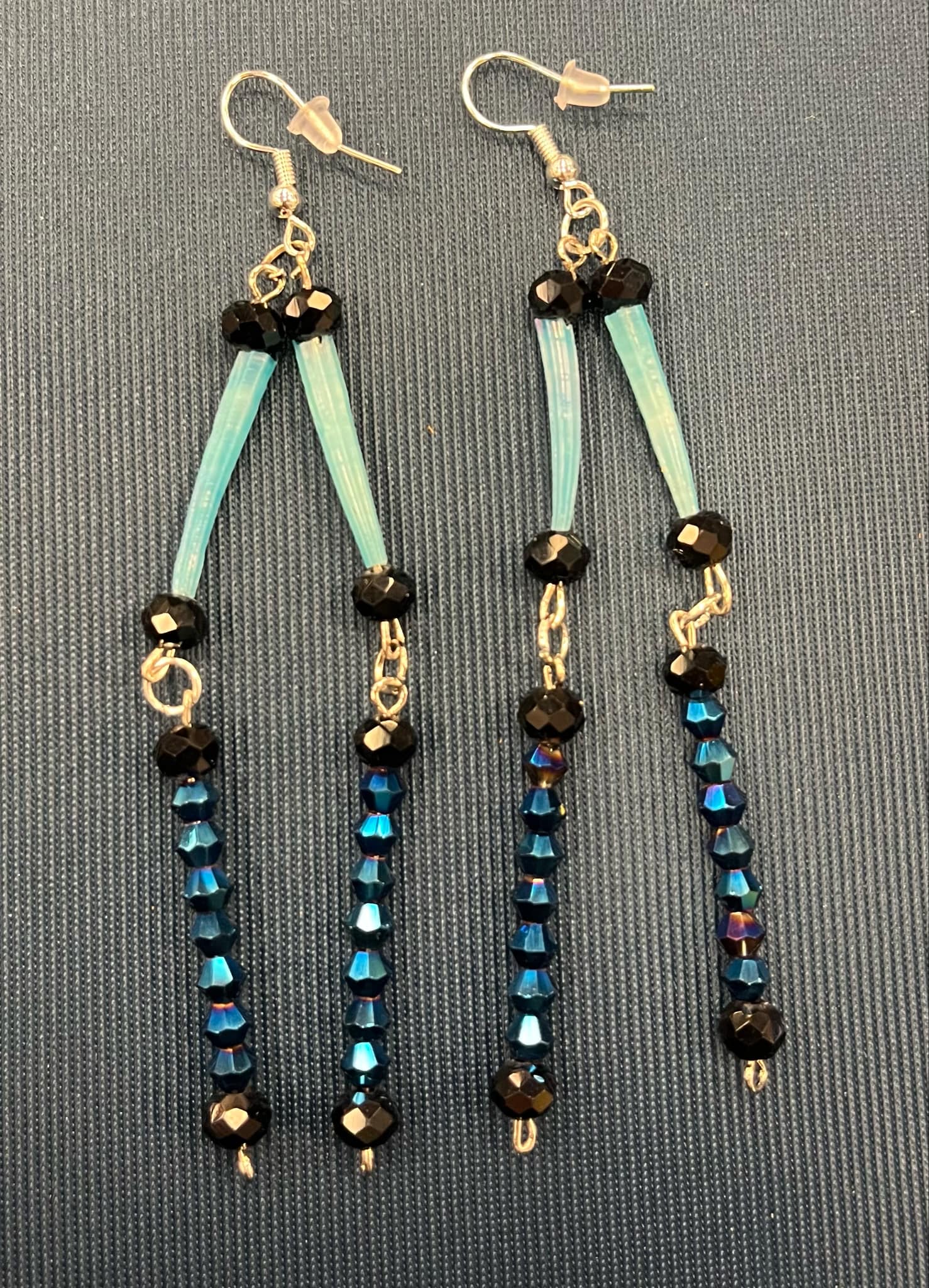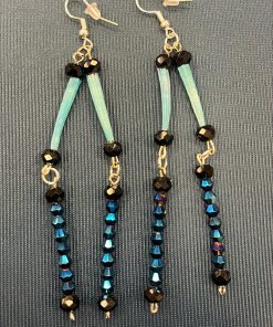 Chic 2-Tier Glass bead earrings, 3 inches long. Made with glass beads and dentalium shell, available in 3 vibrant colours for a stylish touch.