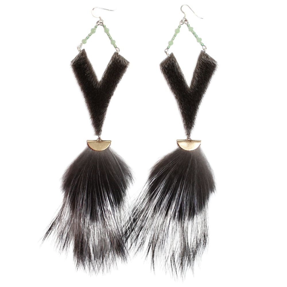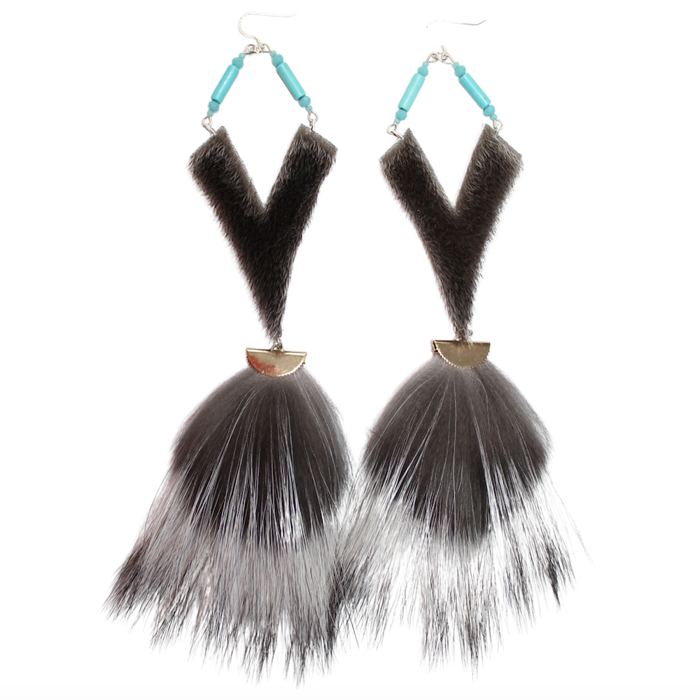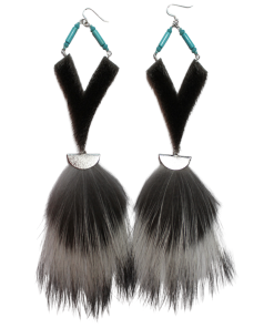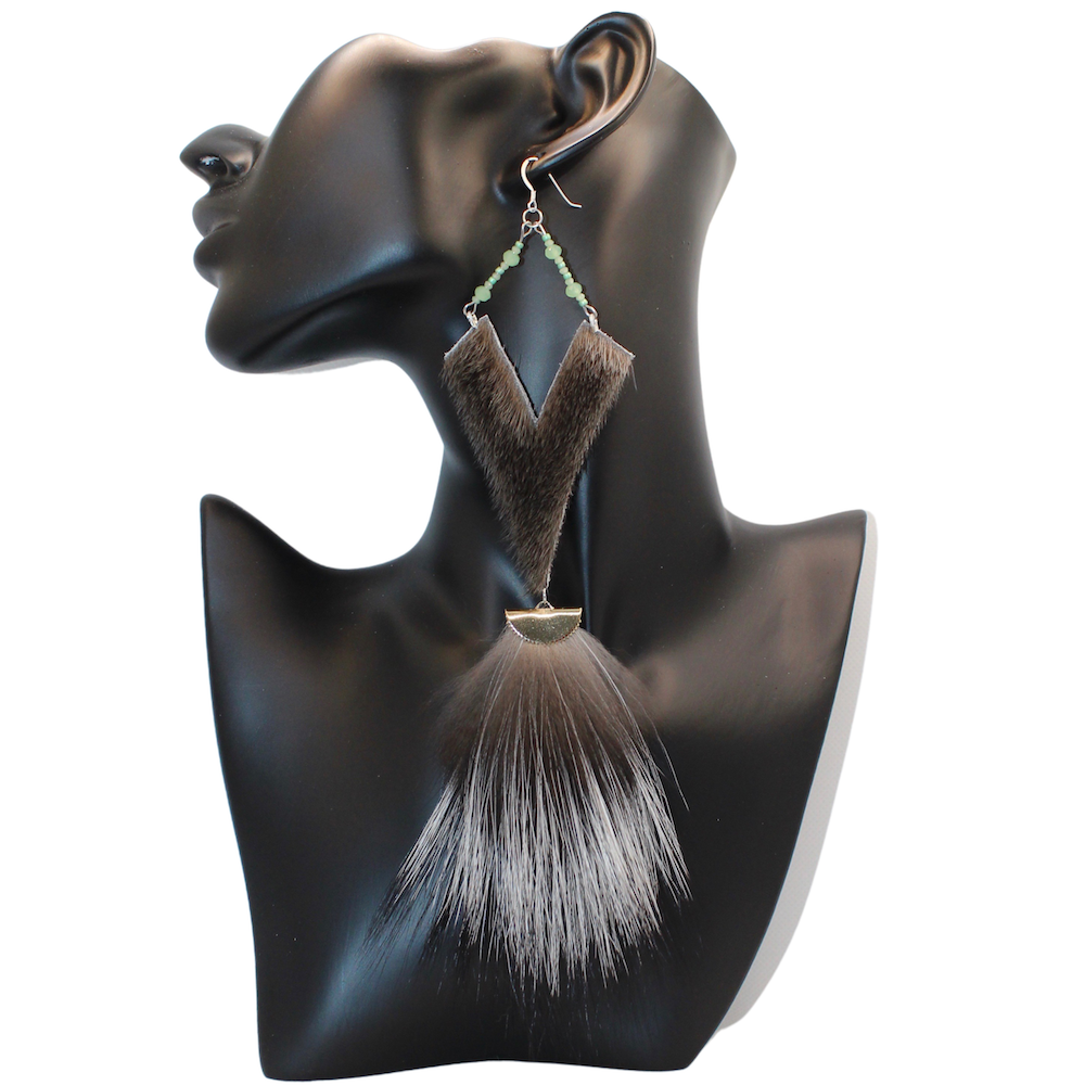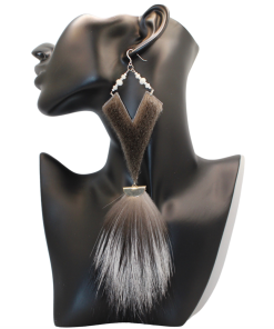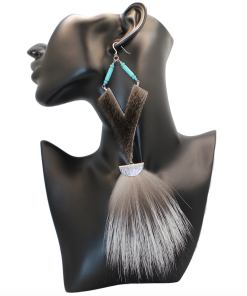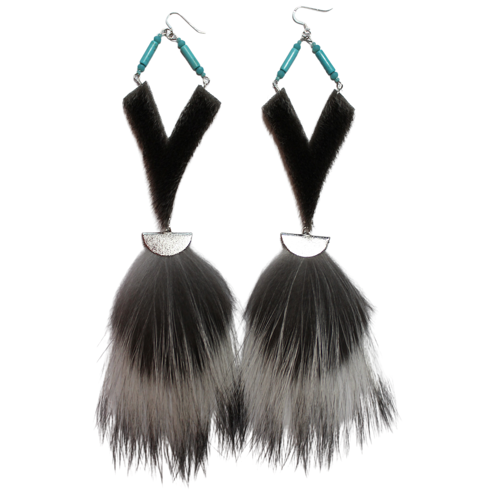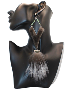 The energy of our ancestors radiated through me while creating these earrings. I instantly knew these earrings would be my signature earrings. I spent many hours working on the design and decided upon one that brought pride to me. The V shape Sealskin resembles a tattoo, located on the forehead, which signifies entering womanhood for us Inuit. The silver fox fur adds a contemporary look that will leave you feeling timeless. Handcrafted with the utmost love and care. Made with Natural Sealskin from our waters, silver fox fur-Embellished rondelle beads. They are backed with complimentary grey moosehide backing and Stirling Silver hooks. Made with fine materials only. You don’t want to miss out on these natural exquisite one-of-a-kind earrings! Go ahead, splurge and treat yourself 😊