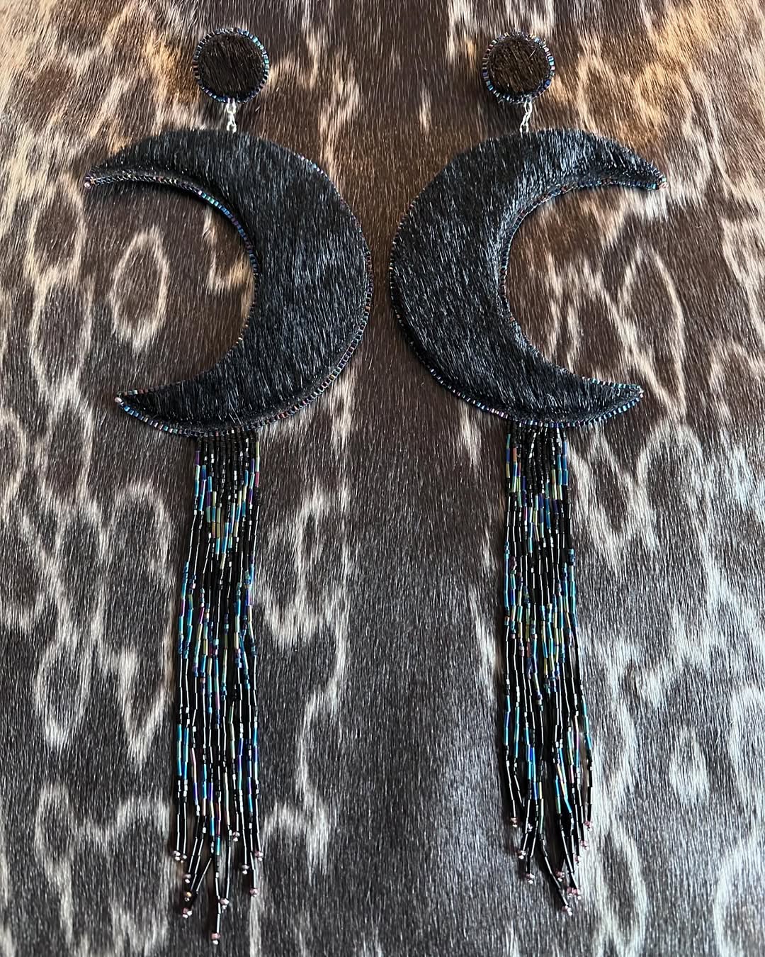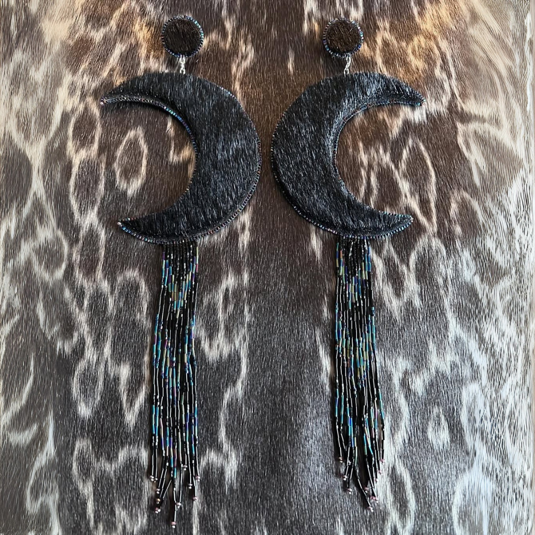 Katie’s Black sealskin moon earrings collab with @nkwejij_little_sister