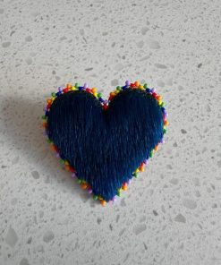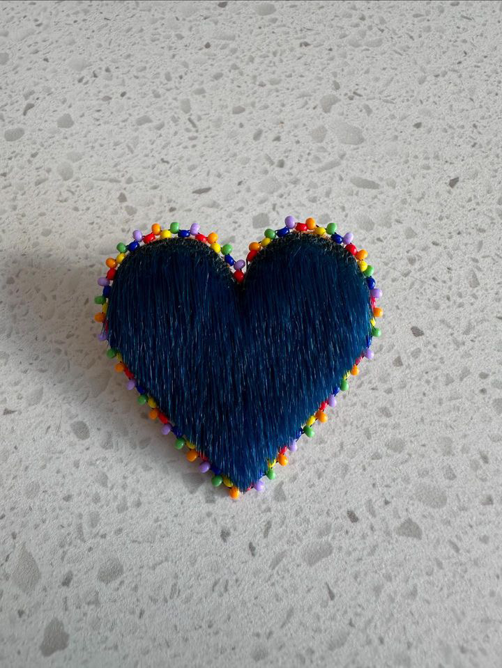 Celebrate Pride with Katie’s Blue Pride Sealskin Pin! Featuring delicate bead edges with vibrant rainbow colors and a durable deer hide backing, this piece is a beautiful symbol of love and diversity.