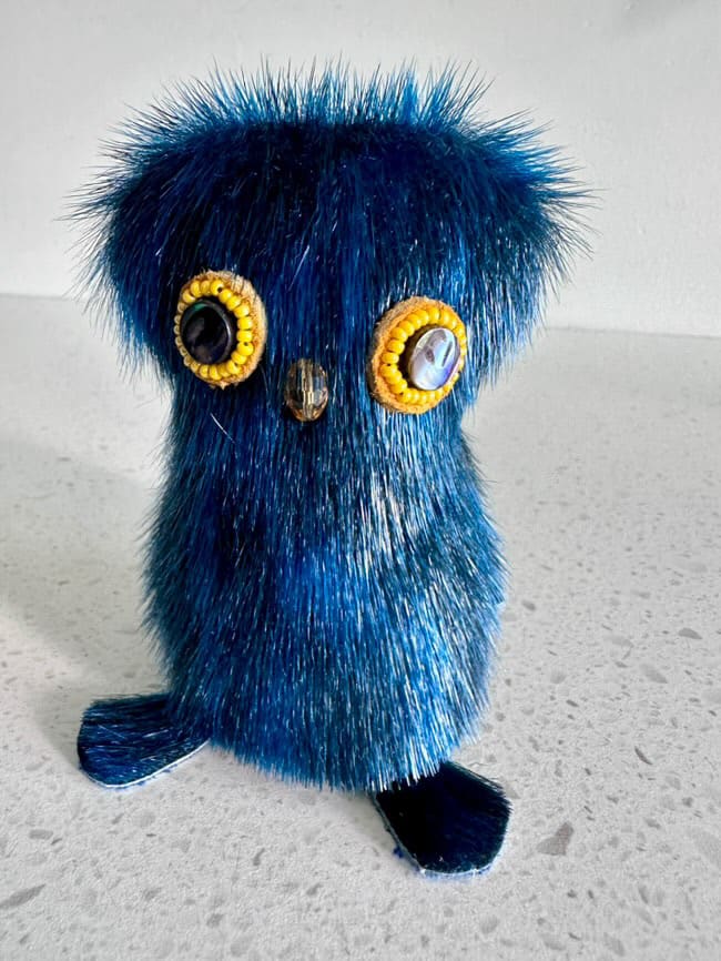 Discover the beauty of Sealskin Ookpiks, meticulously crafted from blue sealskin, featuring abalone and beaded eyes, and finished with soft deer hide. Each piece is a unique blend of tradition and artistry.