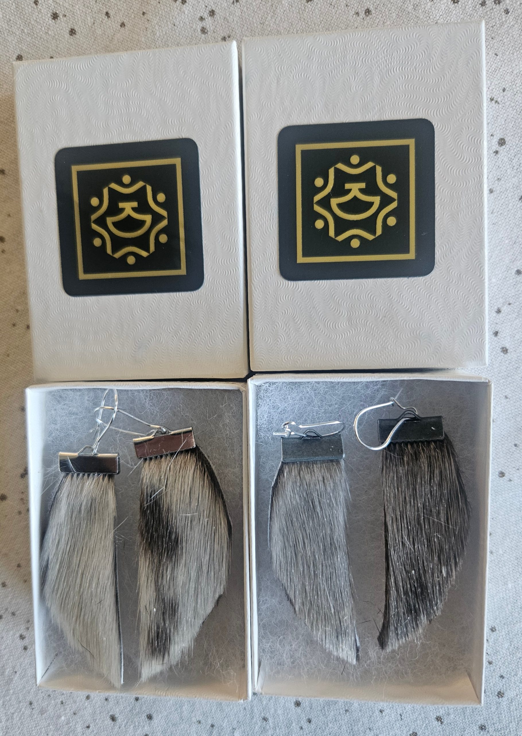 Handcrafted by Cheryl, these 2.5″ x 1.5″ earrings celebrate the raw beauty of natural sealskin.