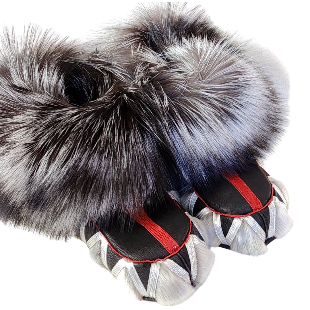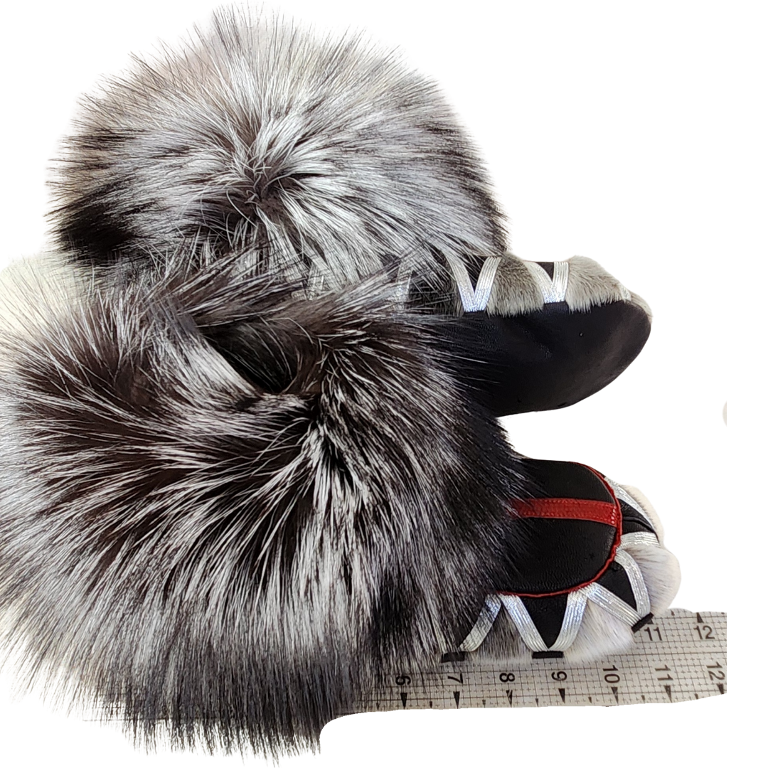 Taalrumiq products are authentically Inuit hand crafted with the utmost quality and care in the tradition of my ancestors. Using fine quality materials, they are made to last and created with the same attention to detail as if I were sewing for my own family. Each handmade product is unique and one of a kind. Keep away from pets, store in a cool, dry place away from sunlight and your original Taalrumiq product will last for a long time. Due to the nature of Sealskin and fox fur, there may be some variation in color, texture, length and thickness