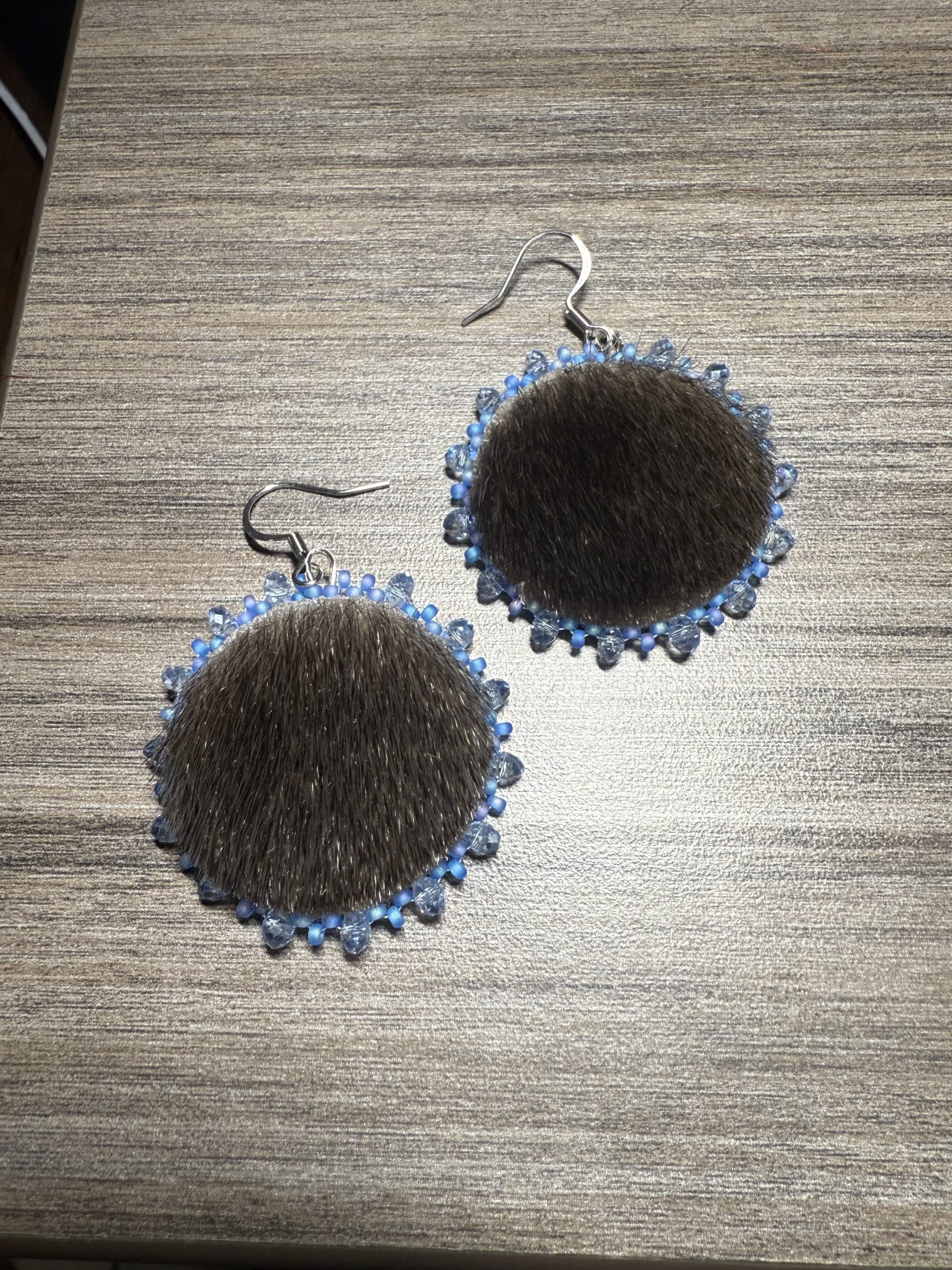 Harp Seal earrings with seal leather backing and stainless steel hooks
