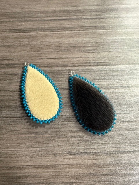 Celebrate the beauty of the North with these unique, handcrafted earrings. Featuring a harp seal design, each piece is adorned with seed beads, a luxurious muskox leather backing, and a carefully inlaid wood accent. Finished with NF lead-free hooks, these earrings are both safe and comfortable to wear.