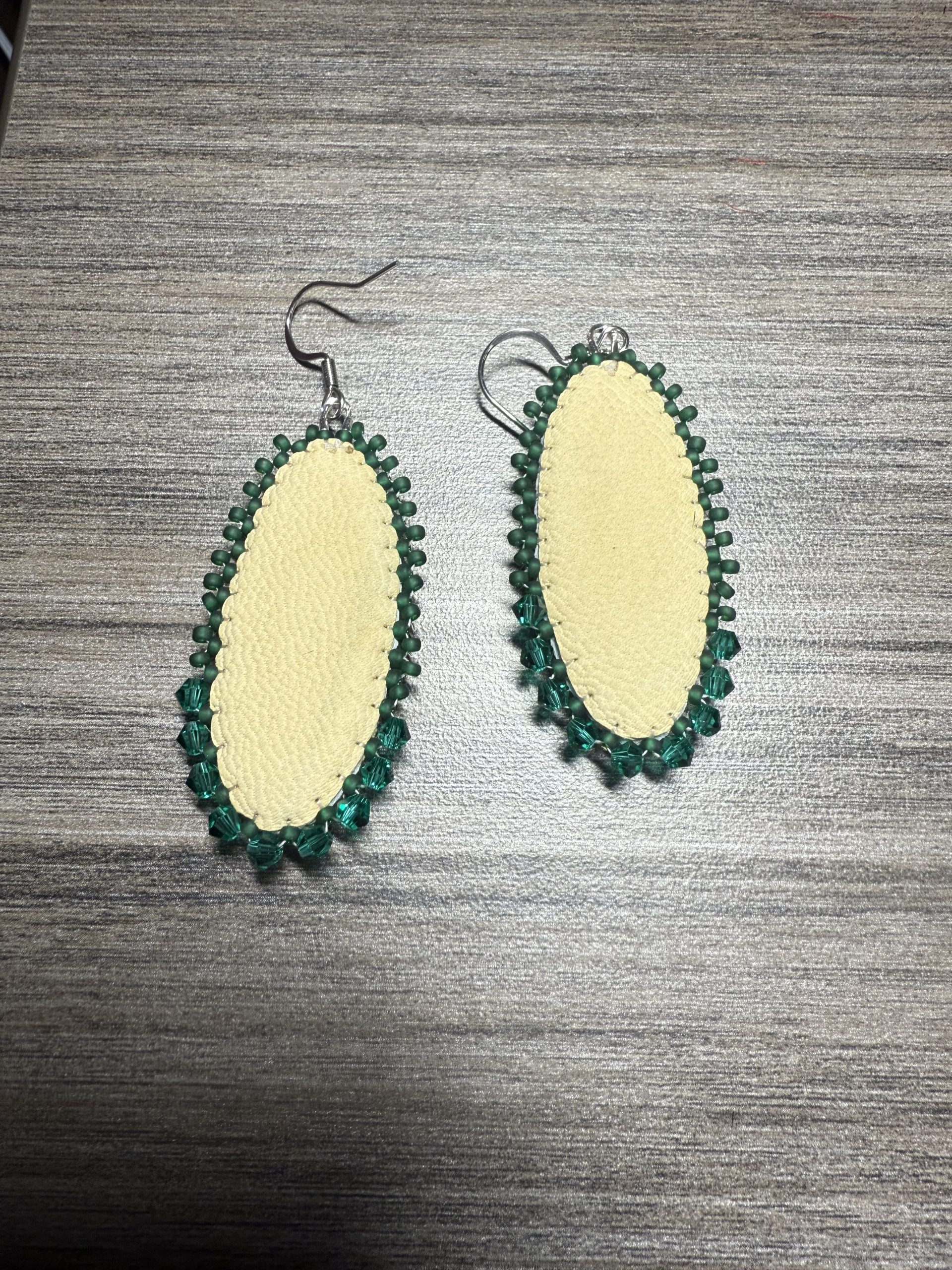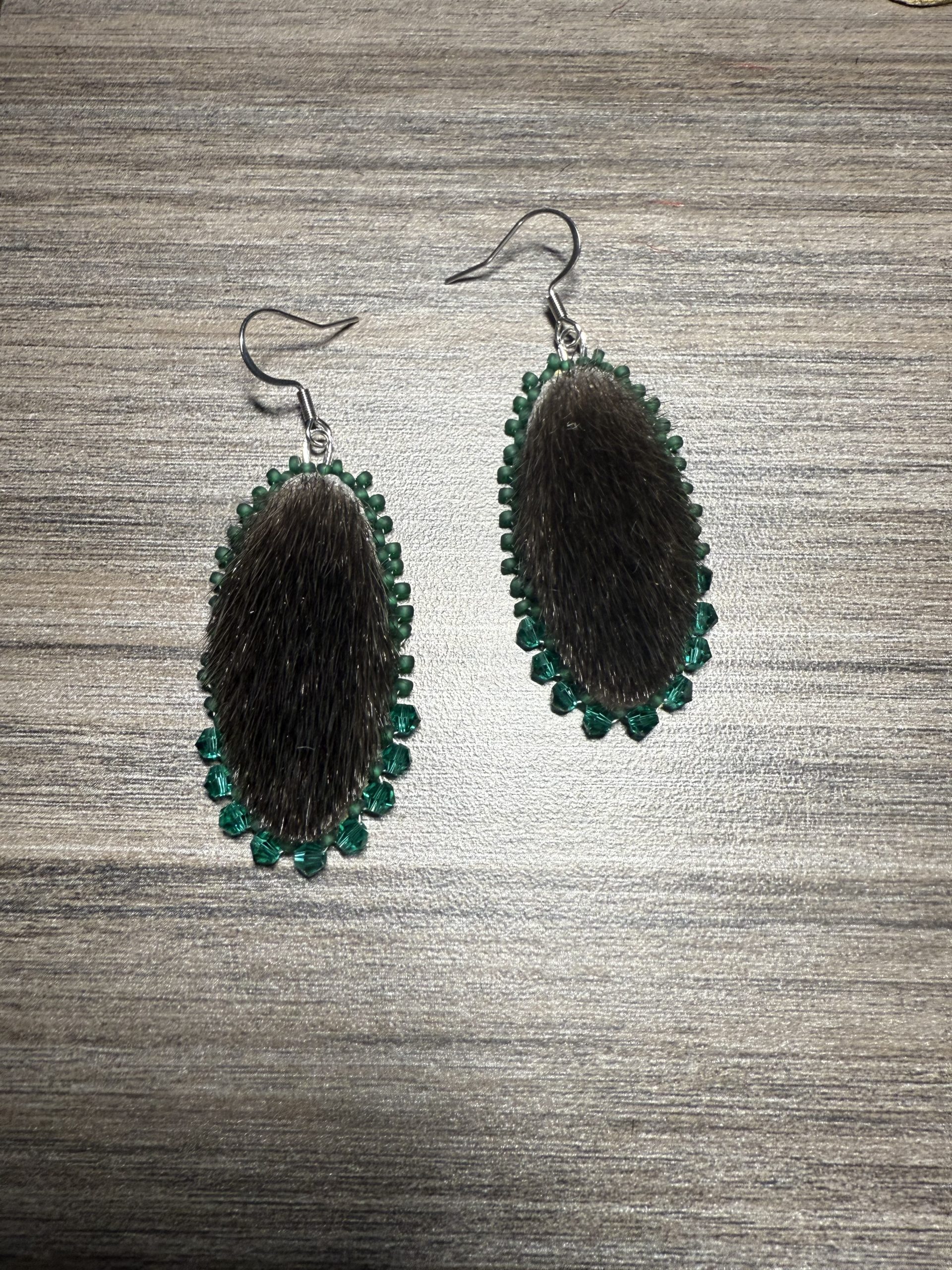 Harp Seal small Oval Earrings with seal leather backing & stainless steel hooks – 2inch length without hook