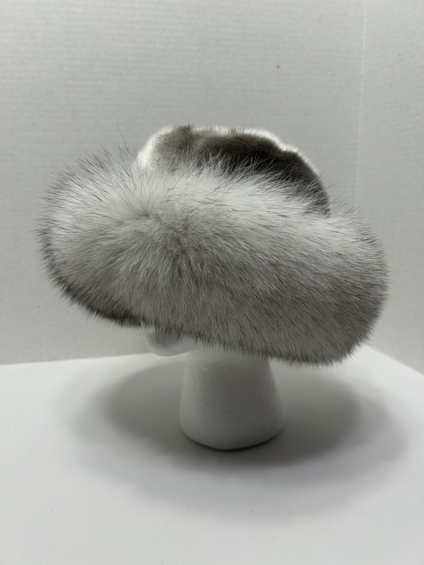 Ladies sealskin bucket hat trimmed with white fox fur. Soft, warm, and stylish, this hat offers a unique statement look while providing comfort and durability. Ships approximately 2 weeks after ordering.
