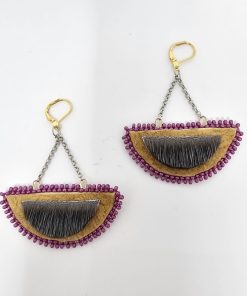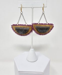 These earrings are crafted from moosehide, sealskin, and decorative beads, offering a natural and eye-catching design. With closed clasp hooks for a secure fit, they measure 2×3 inches, making them a stylish and unique accessory for any occasion.