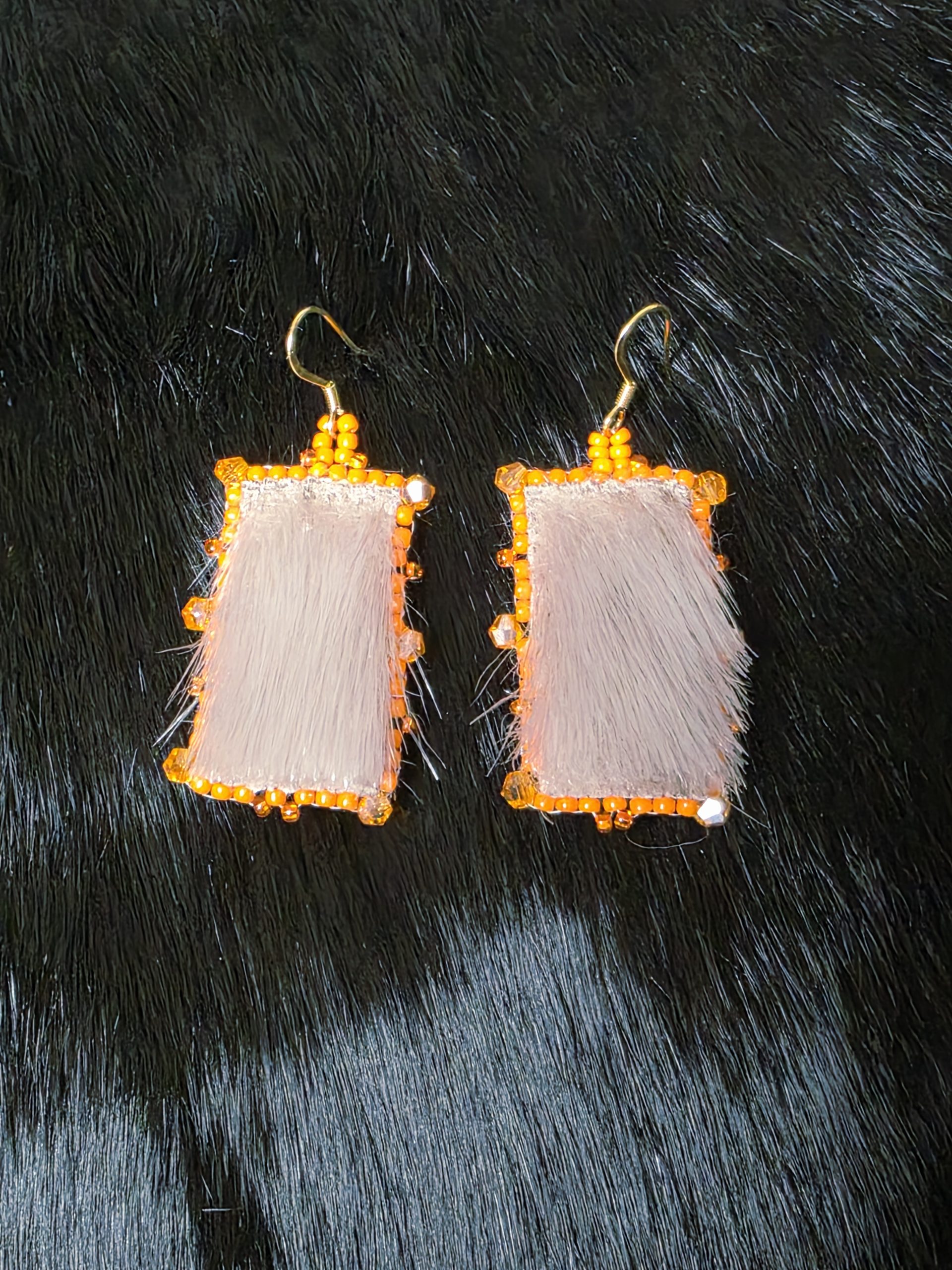 Beaded with orange toho beads, silver lined orange seed beads size 11/0, orange bicones size 3/0