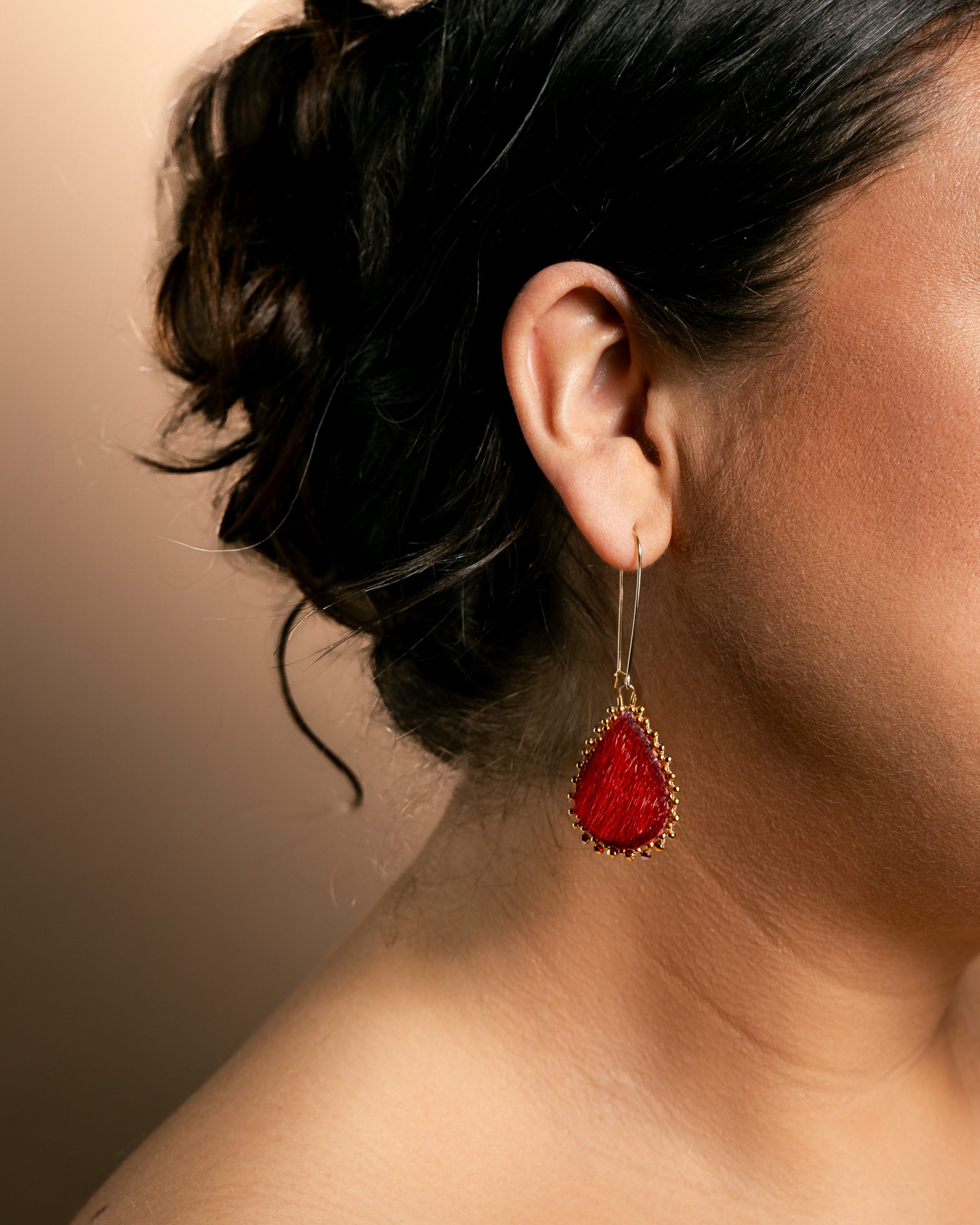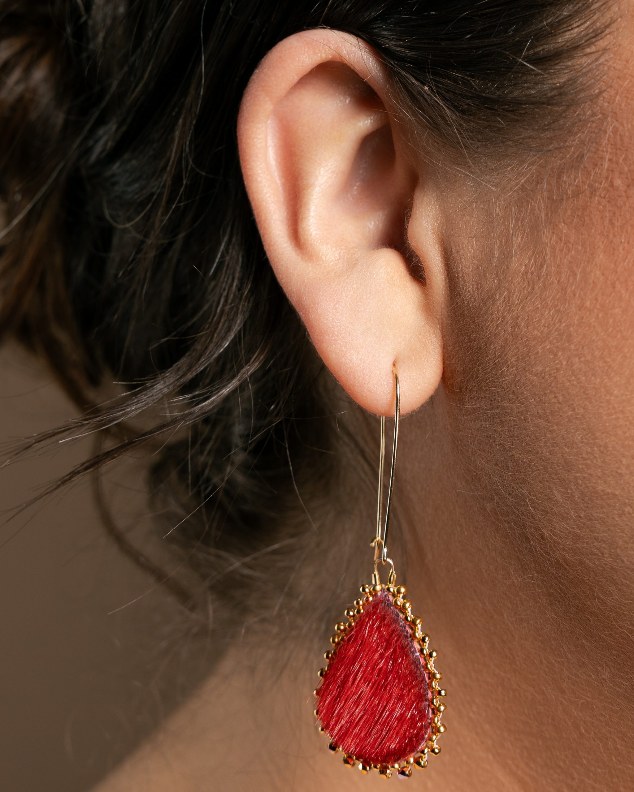 Upgrade your look with our stunning Red & Gold Sealskin Drip earrings. Made from high-quality sealskin and muskox leather, featuring shiny 24K gold beads and hooks. At 4 inches long, they’re perfect for adding a touch of elegance to any outfit. These unique earrings are a must-have accessory to showcase your style with confidence.