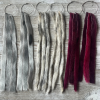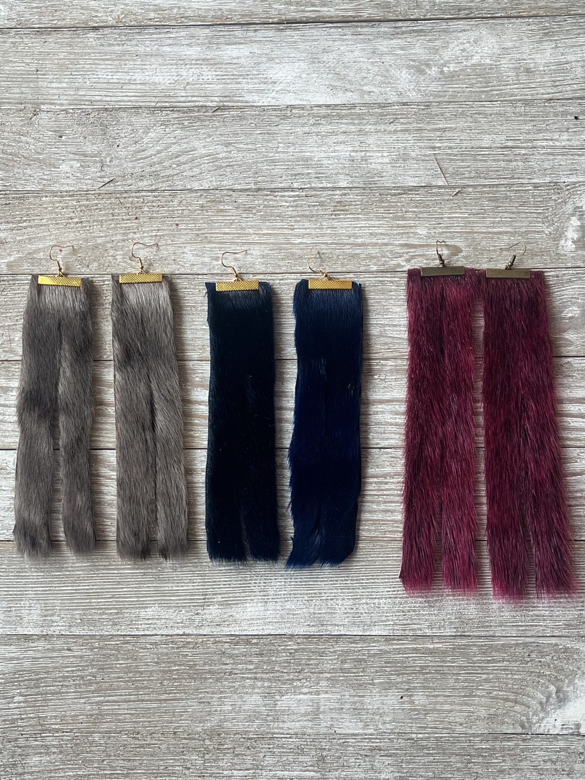 These earrings are available in 4″ and 6″ lengths and feature luxurious seal fur. Choose from natural, navy, or red hues for a unique, statement-making accessory.