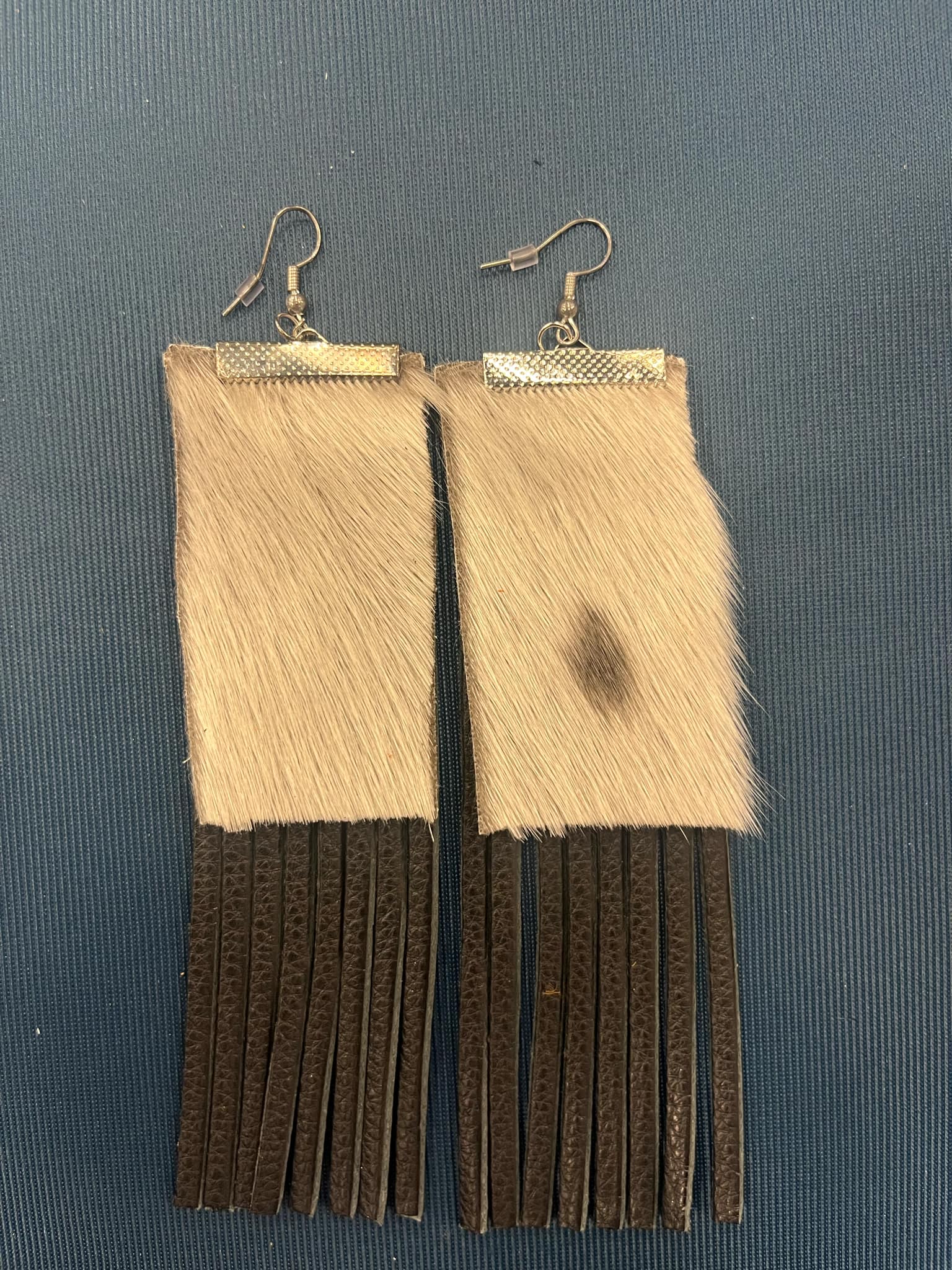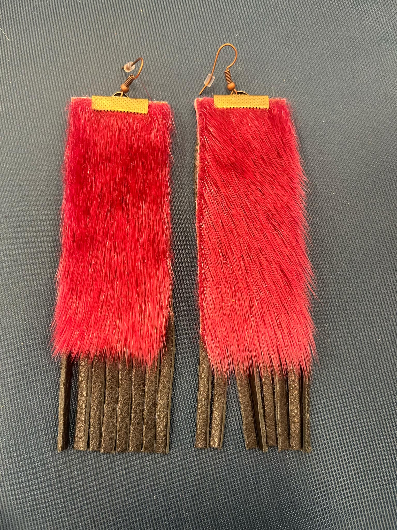 Elegant Sealskin and Leather Earrings, 5 inches.Available in natural and red colors for a bold, stylish look.