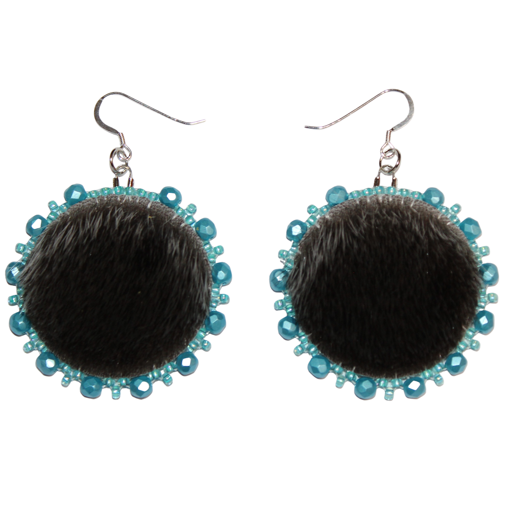 Sealskin earrings are handcrafted with the utmost love and care. Made with Natural Sealskin from our waters-Embellished with Blue color Czech seed and Preciosa Czech larger beads. They are backed with complimentary grey moosehide backing and Stirling Silver hooks. Made with fine materials only.