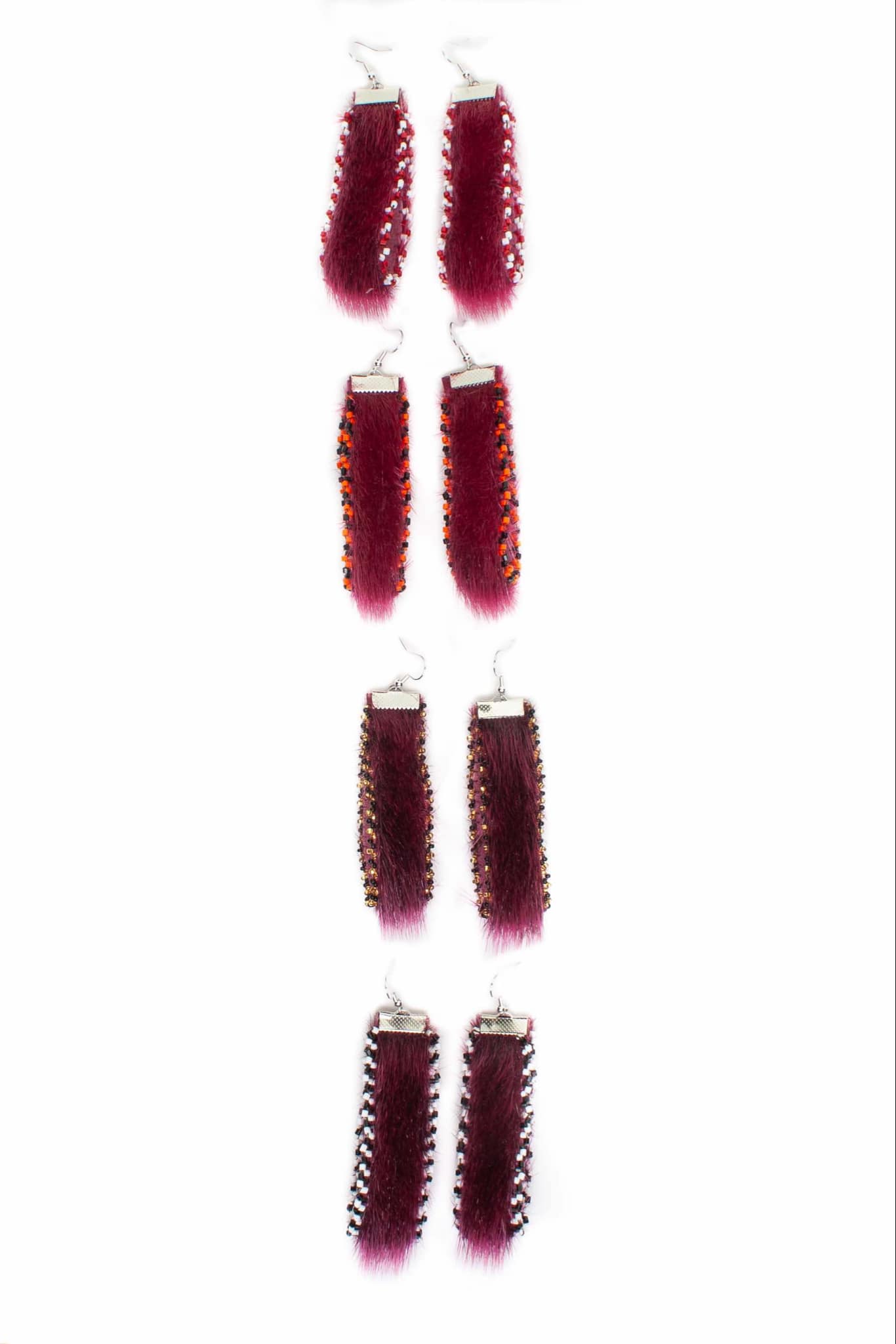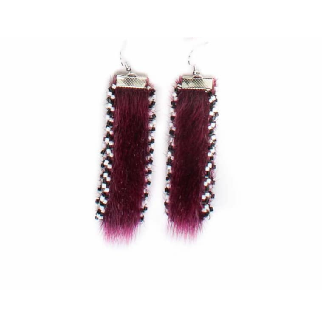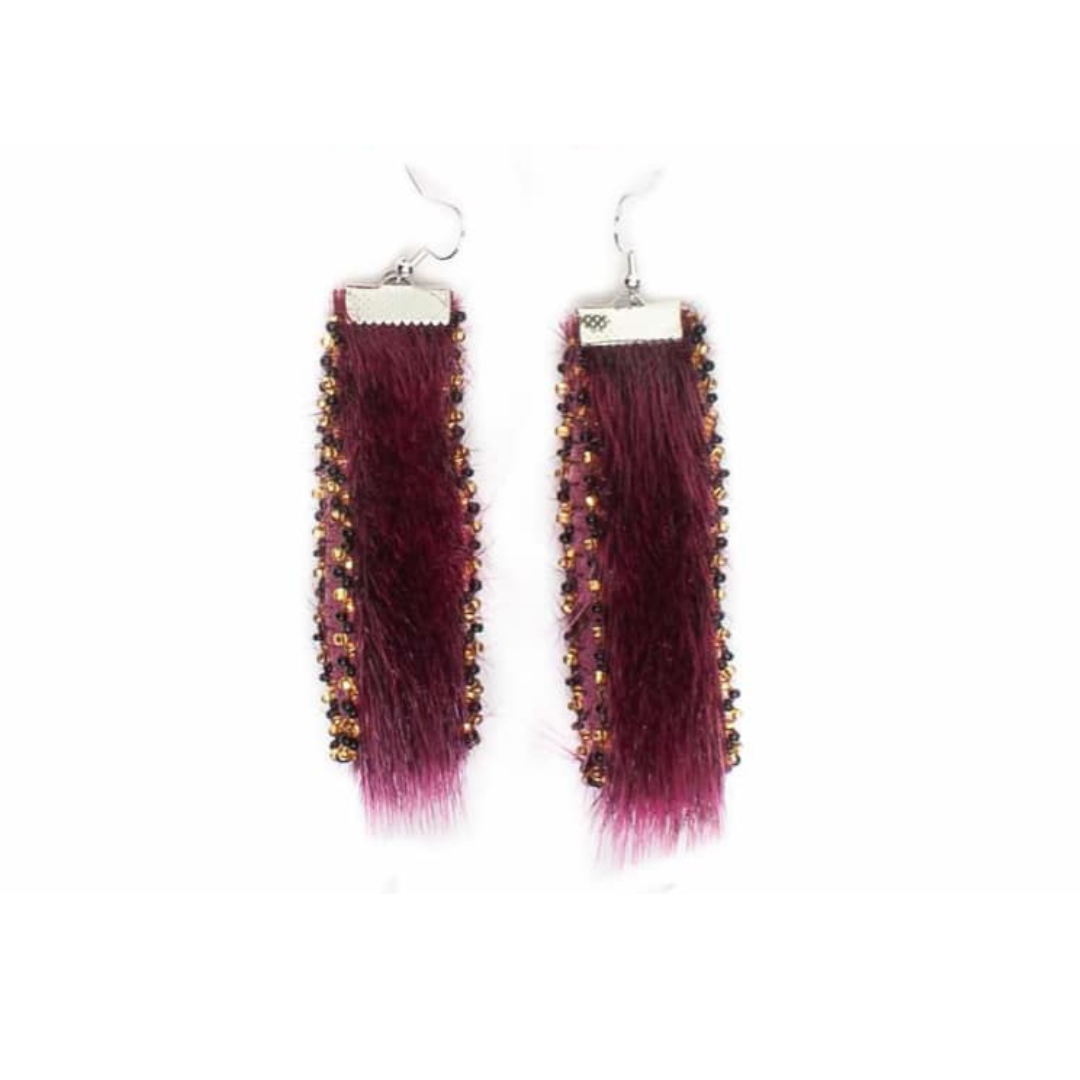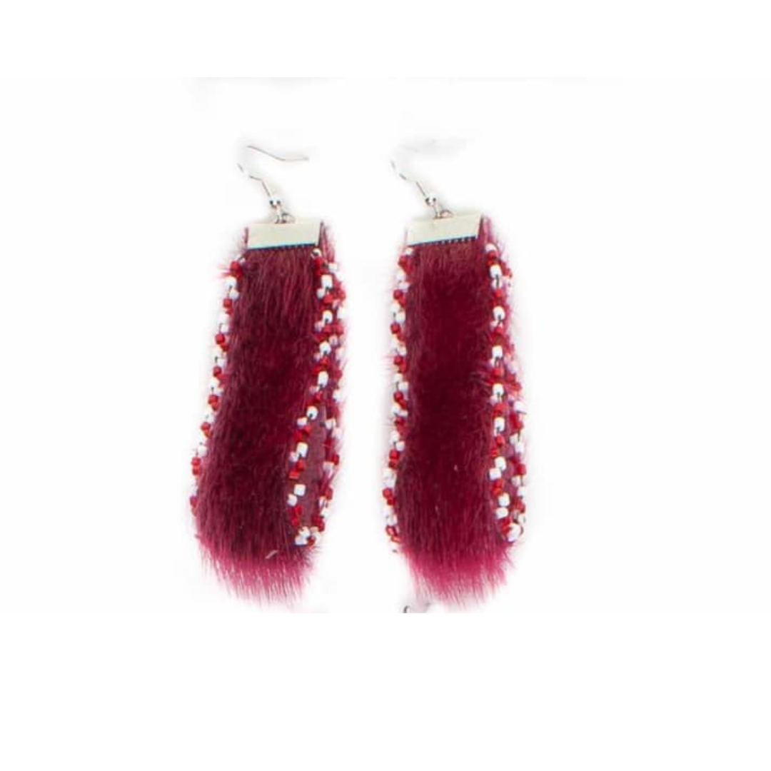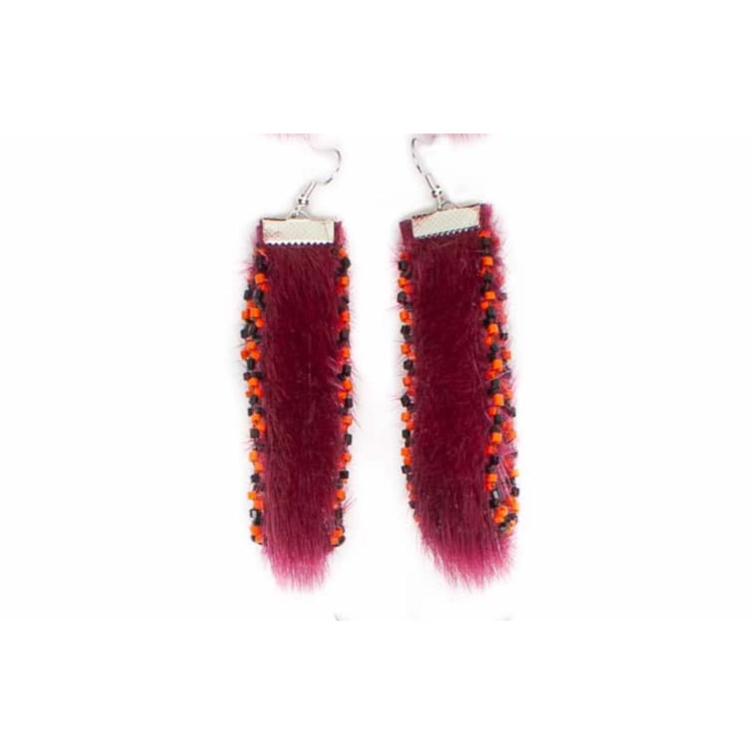 Stylish Sealskin Hoop Earrings with a unique beaded edge, offering a blend of elegance and natural beauty. Made with dyed sealskin and adorned with delicate beads for a perfect finish.
