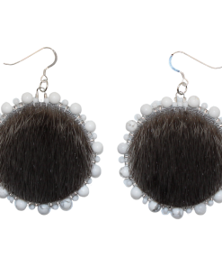 These gorgeous Sealskin earrings will not only leave you looking fabulous, but you will feel it too! Made with Natural Sealskin from our waters and embellished with Natural Howlite-a gemstone that is believed to heighten awareness and patience. As a calming stone, it may help the wearer to reduce their own levels of stress. Let this beautiful combination of Sealskin and Howlite guide you in the process of slowing down physically while maintaining full spiritual and mental awareness. Handmade by Inuk artist with lots of love and care. Made with fine materials only, backed with matching grey moosehide, Czech seed beads and Stirling Silver hooks.