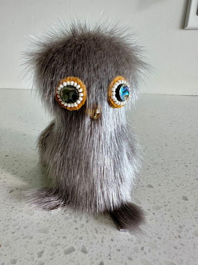 Introducing our Sealskin Ookpiks: These unique creations are handcrafted from all-natural materials, featuring authentic sealskin, abalone, beaded eyes, and soft deer hide. Each Ookpik is a beautiful blend of tradition and artistry.