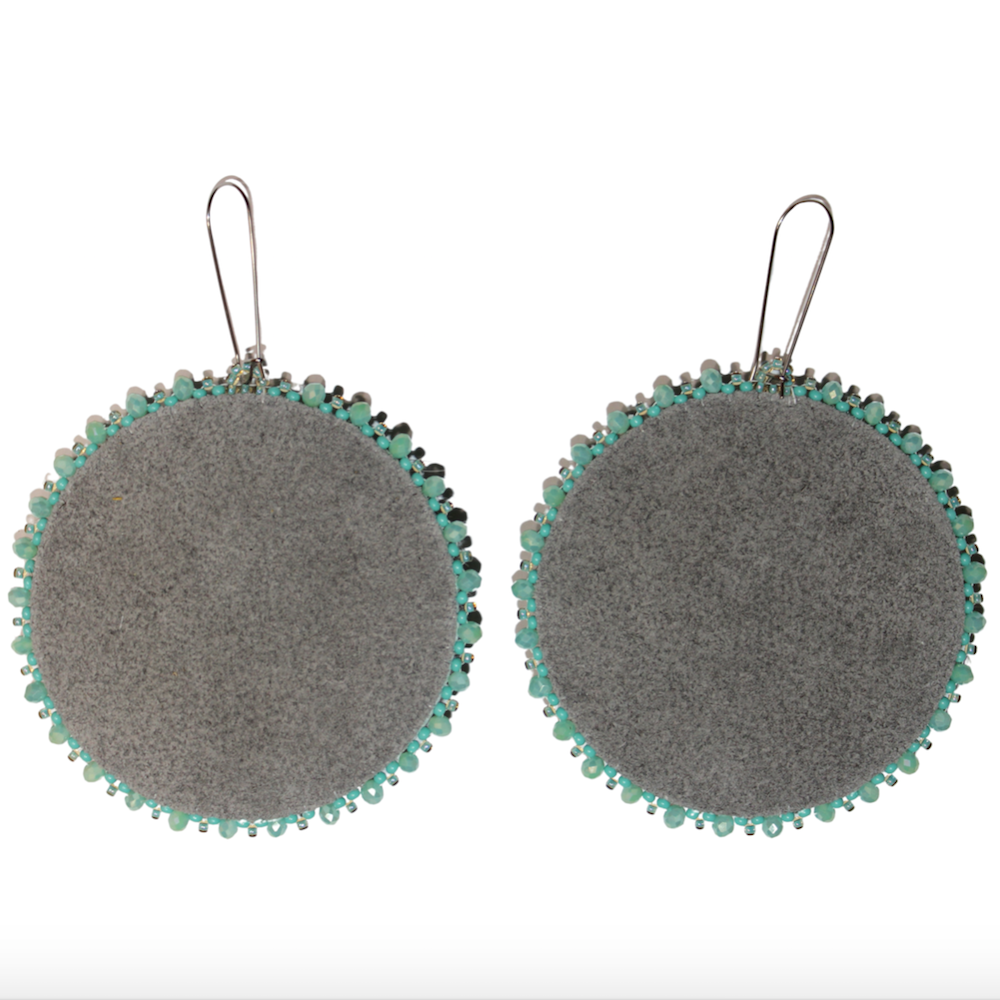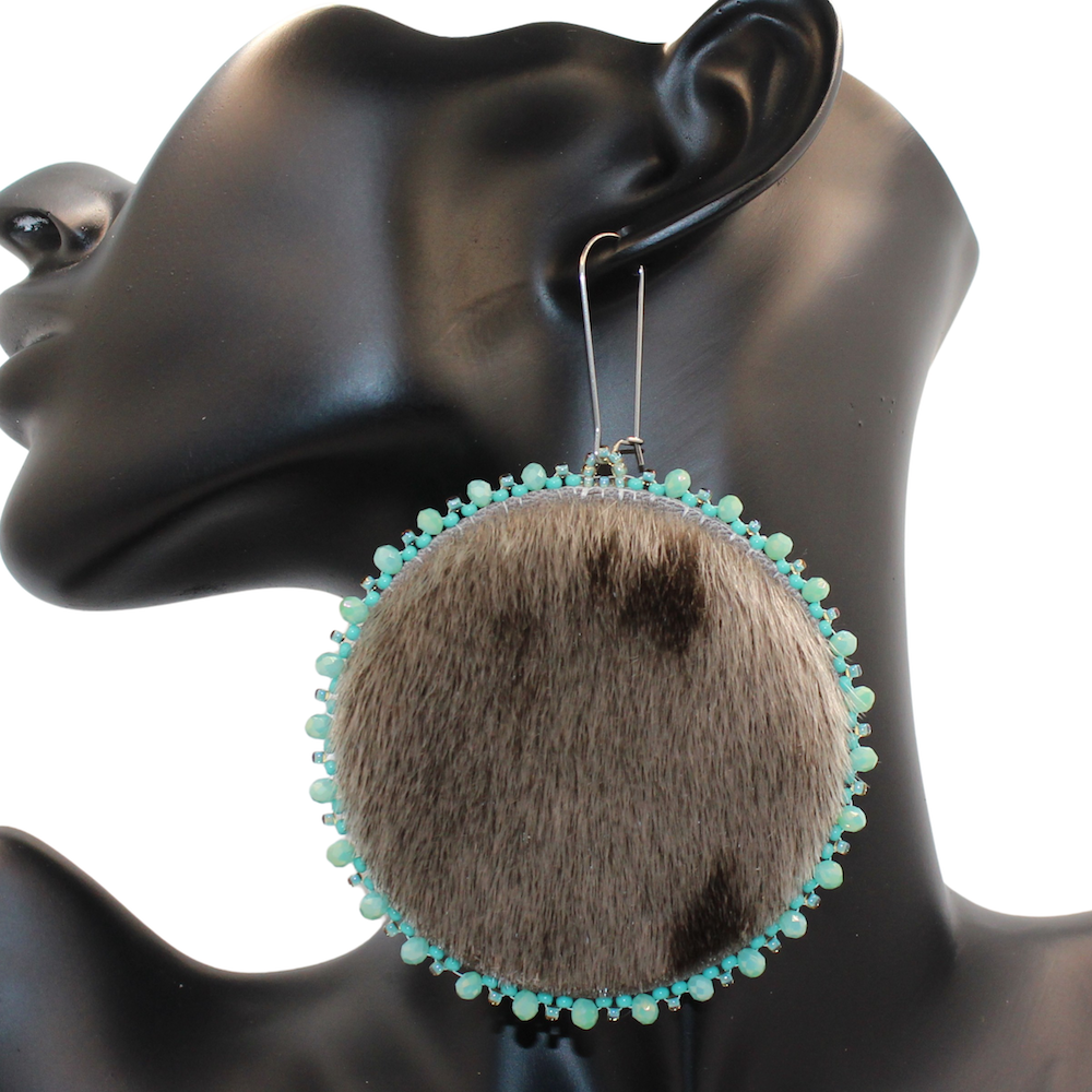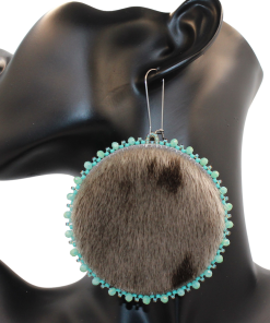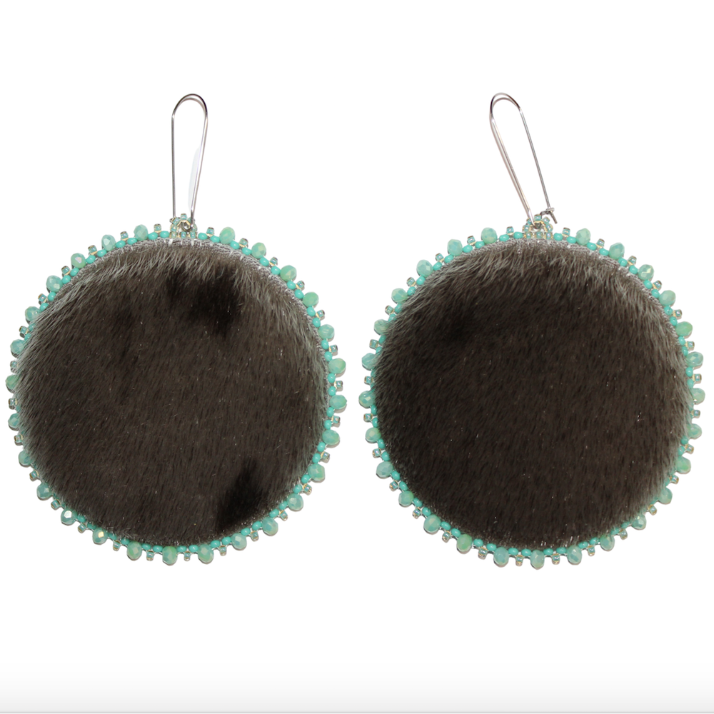 These Supersize Turquoise sealskin earrings will leave you feeling fierce! Don’t let the size fool you, they are not heavy. Handcrafted with the utmost love and care. Made with Natural Sealskin from our waters-Embellished with Czech seed beads and rondelle beads. They are backed with complimentary grey moosehide backing and Kidney hooks. Made with fine materials only. Go ahead, get your auntie on!