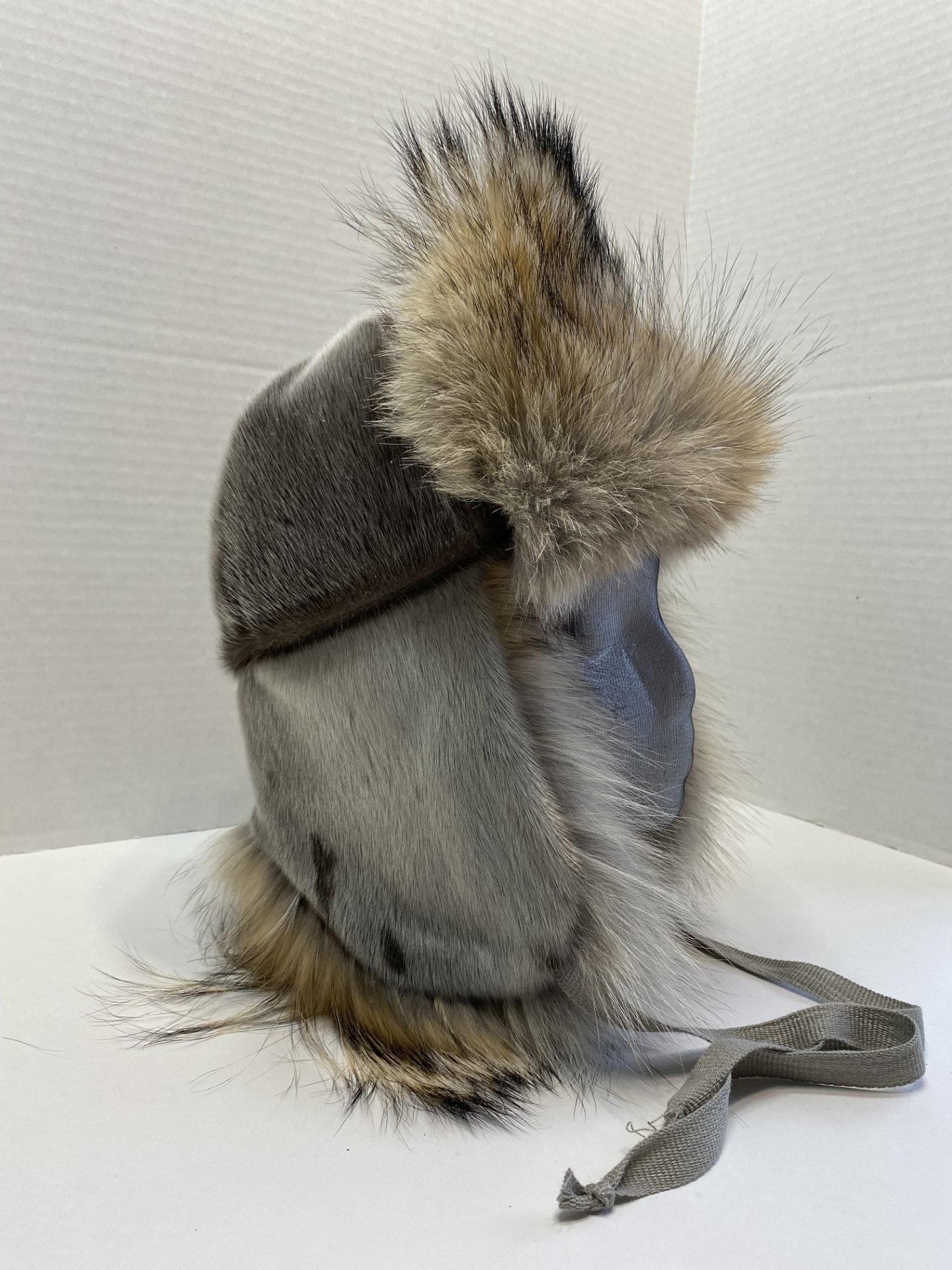 Handcrafted Sealskin & Wolf Fur Trapper Hat – Made to Order! Luxurious, warm, and unique. Order yours today!