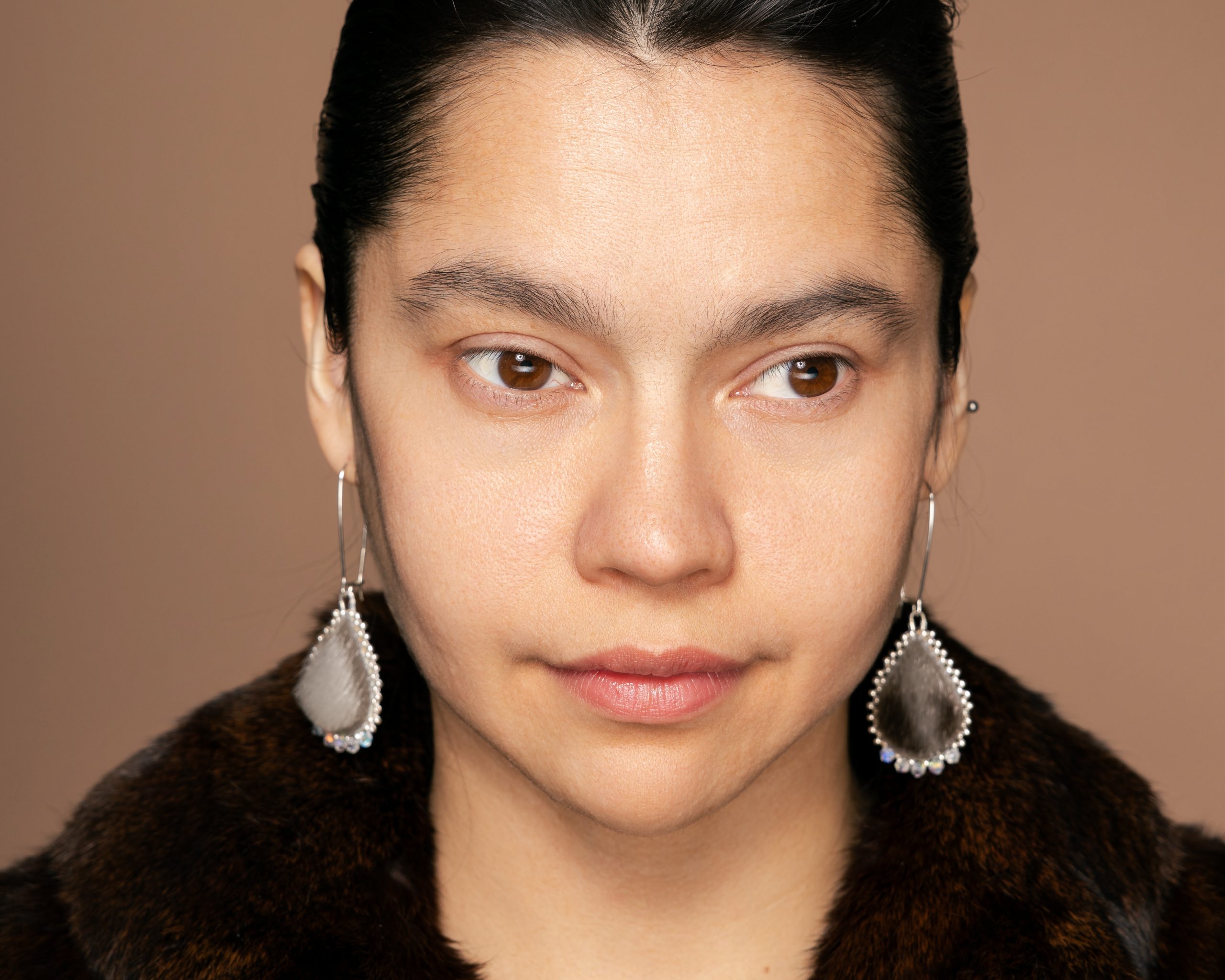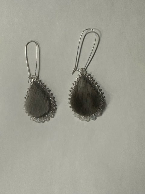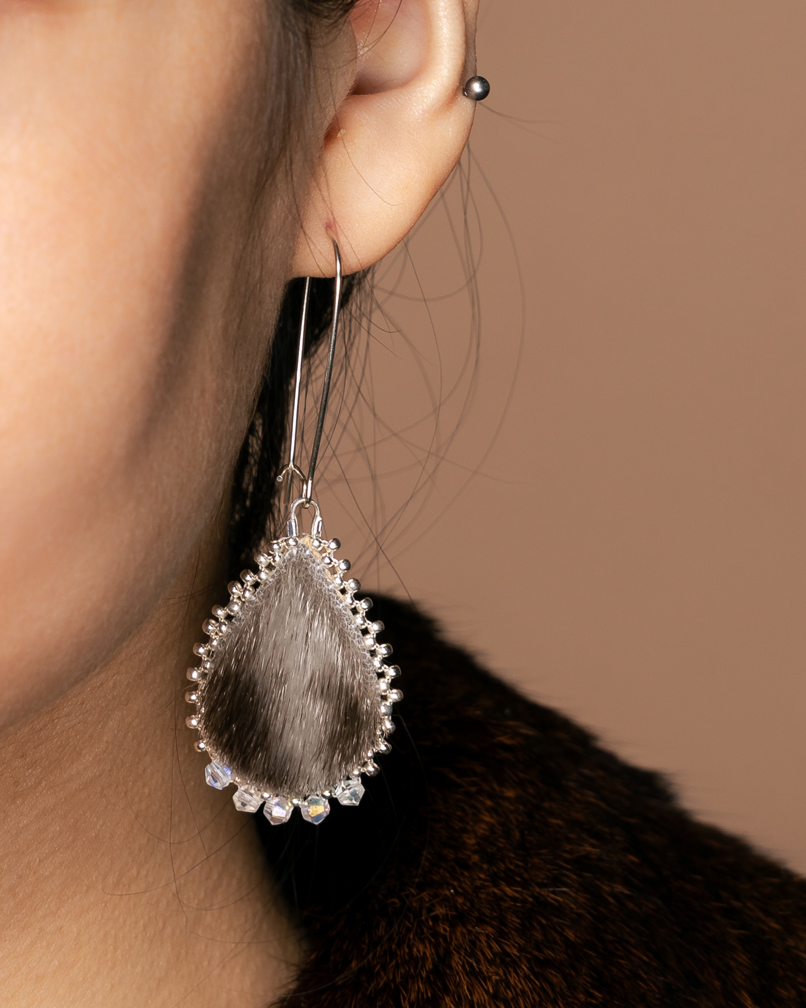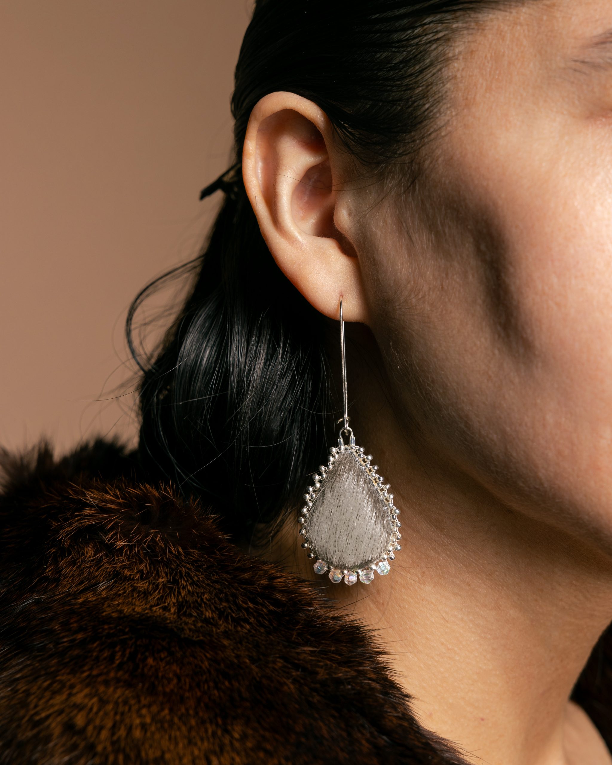 Discover Ruth’s Silver Sealskin Drip earrings, made from natural sealskin and muskox leather, accented with dazzling 925 silver and Swarovski beads. These 4-inch earrings add instant elegance to any outfit, making them a must-have accessory.