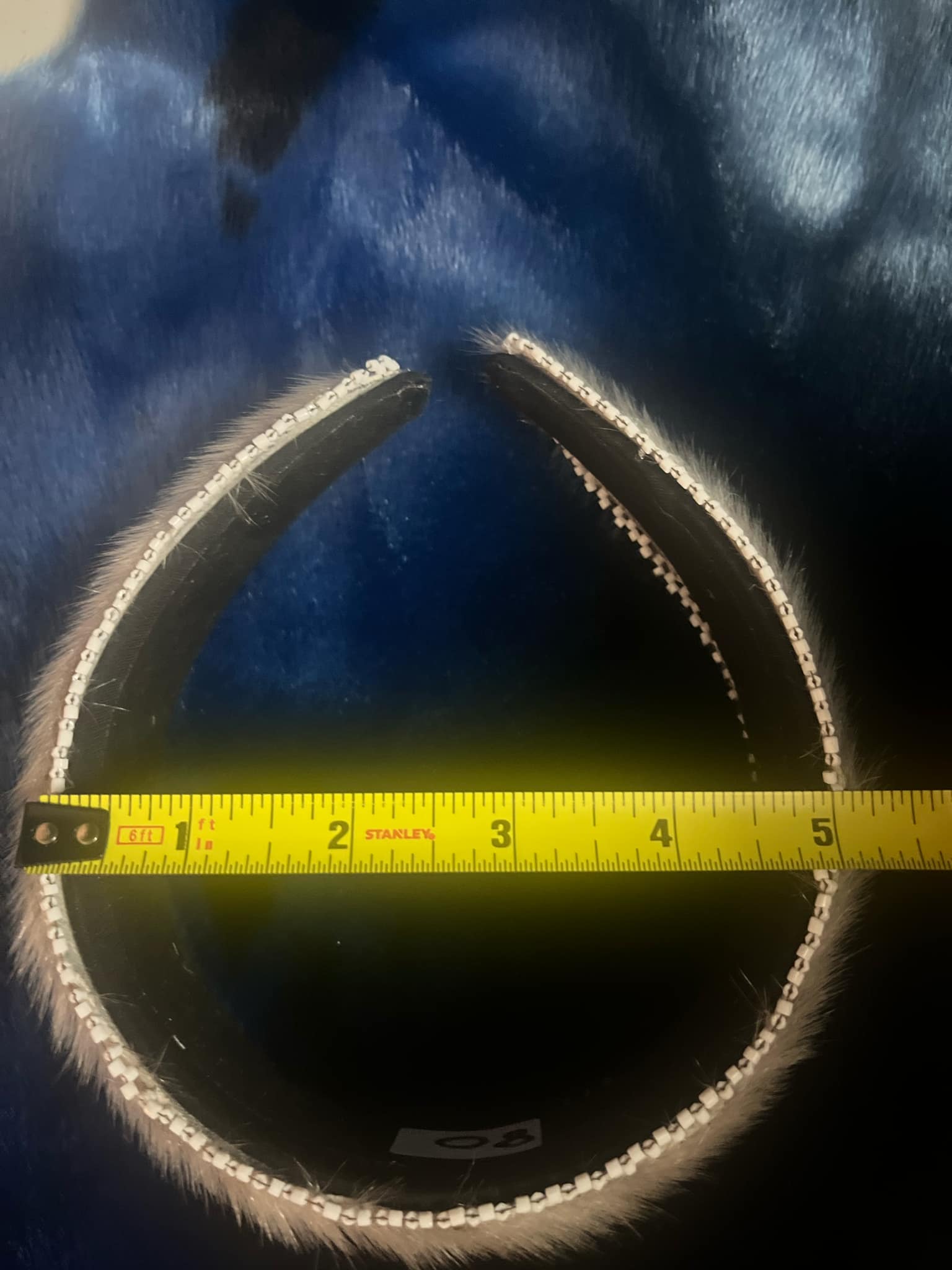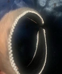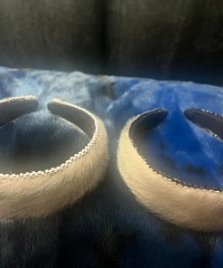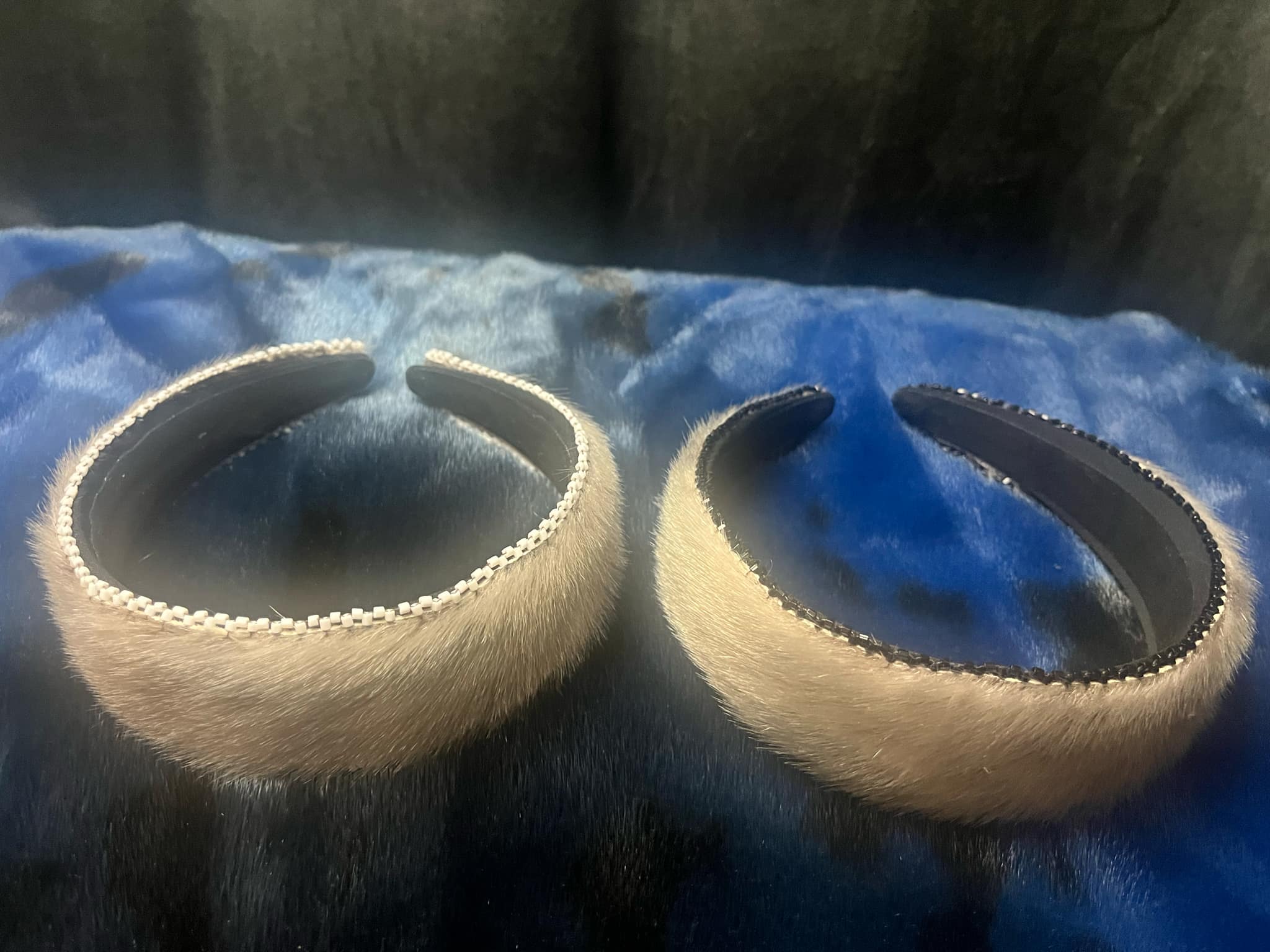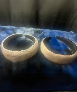 These stylish 5-inch headbands feature silver sealskin and come in two elegant options: one with white beads and the other with shiny black beads. Both headbands are beaded on both sides.