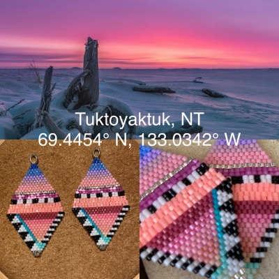 “Most of my beadwork inspiration comes from the Arctic Skies at the same time our Inuvialuit Dance parka trims. Living in the Arctic, you see the most beautiful skies and the most vibrant colours, which is inspirational and exciting. I try to interpret what my eyes see in my beadwork,” says jeweller Erica Lugt of She Was a Free Spirit.