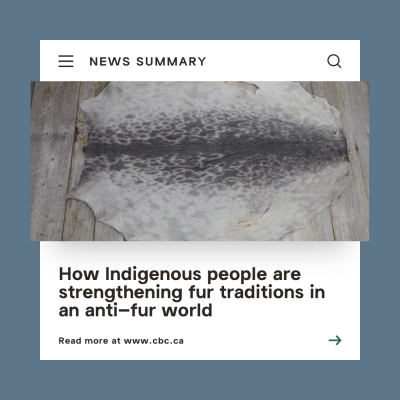 Summary: How Indigenous people are strengthening fur traditions in an anti-fur world (2/1/2023) - Animal rights advocates have long condemned the fur business as cruel and needless. However, Northwest Territories artists and trappers disagree. Indigenous people believe fur can be a sustainable, respectful, and even luxury material for clothing, accessories, and art. They feel it is critical to retain fur's significance in Indigenous cultures and traditional economics. … Continue Reading
