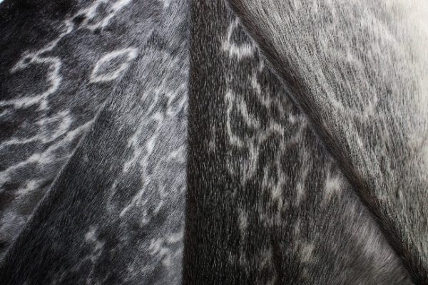 Primarily silver in colour with a characteristic black pattern, Harp seal pelts have soft, short and shiny guard hair and are the most widely available.