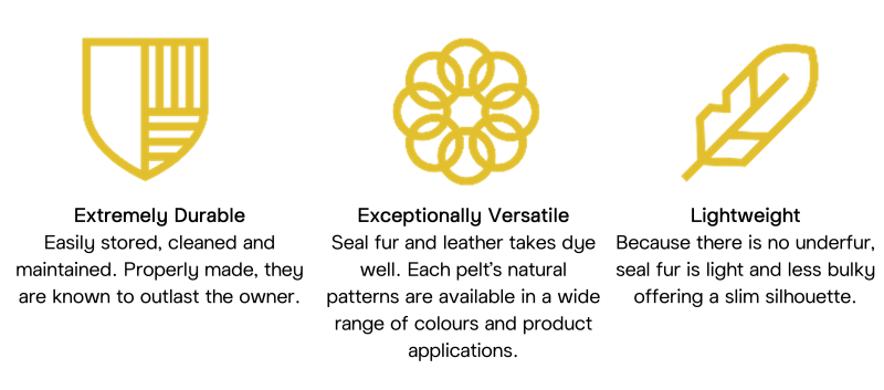 Seal can be used as fur or leather and has been used for thousands of years to protect Canada’s northernmost residents from the harshest winter conditions. Seal is breathable and has the remarkable ability to repel water while blocking wind and retaining heat. Withstanding the harshest of climates, seal fur and leather is soft and elegant and perfect for a multitude of uses.