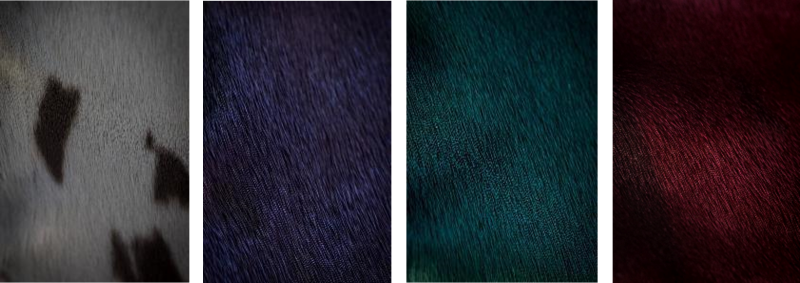 Seal pelts have a beautiful silver-grey colouring, with natural dark spots and stripes. Indigenous fashion designers and artists may choose pelts that preserve this look—or they may opt for a brighter colourful dyed option. Black, burgundy, cherry, dark brown, orange, electric blue, fuchsia, green and purple are just some of the few colours that are available.