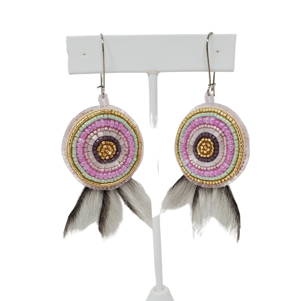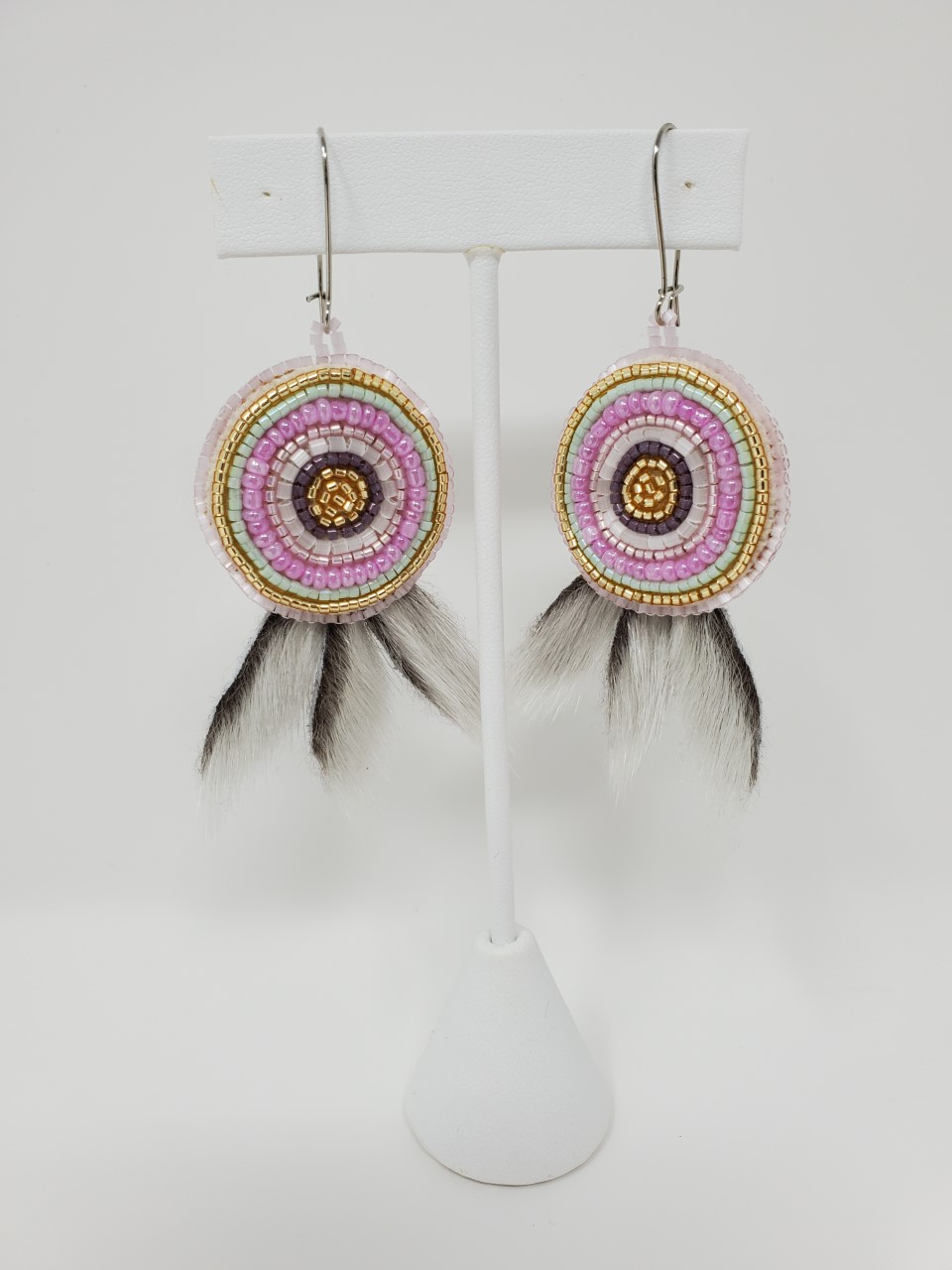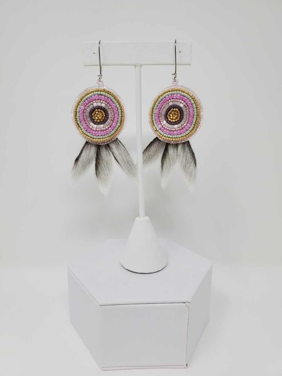 These bead and sealskin dangles are made and inspired by Arctic tundra flowers. Where in the Arctic, flowers are beautifully protected by their own natural furry stems.