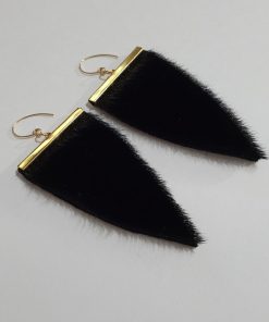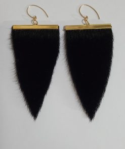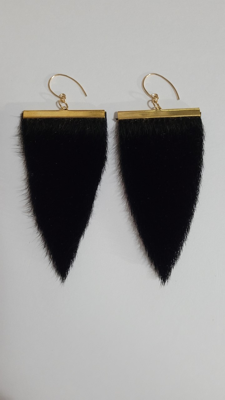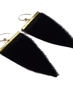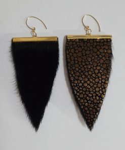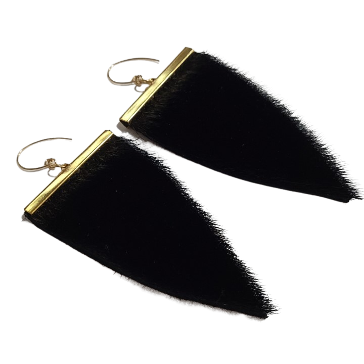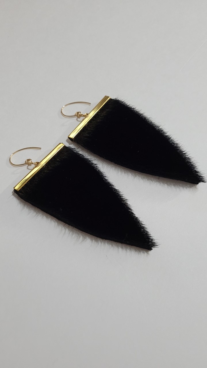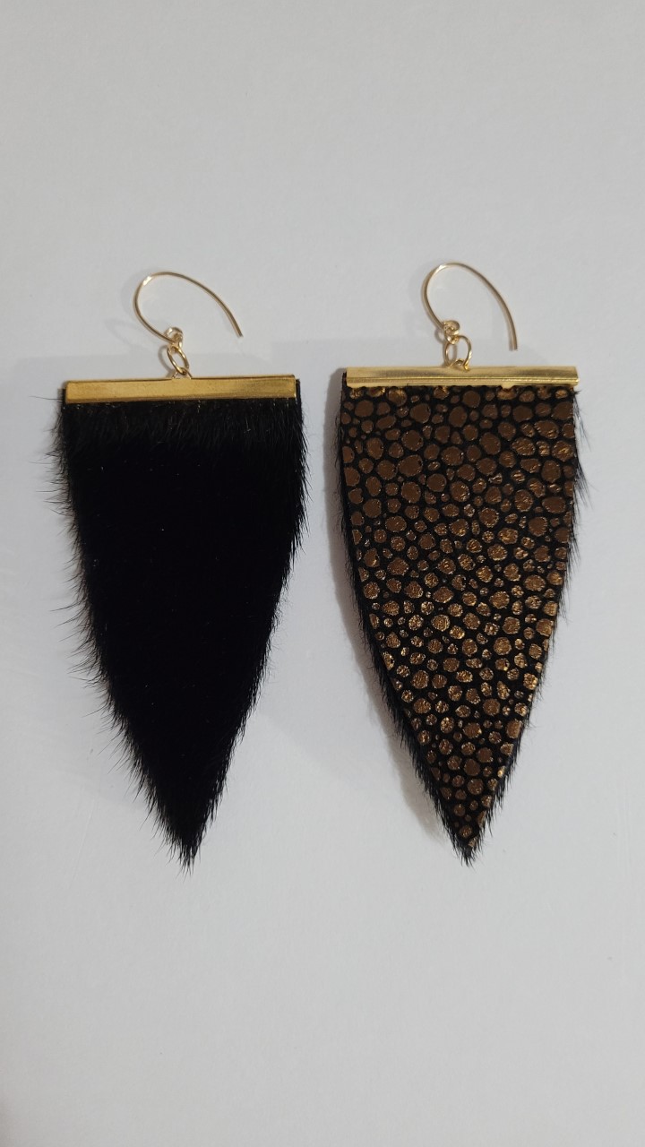 This gorgeous pair of earrings is made out of Harp Seal skin and features a shiny metallic embossed leather back. The 14K gold hooks and bars add a unique touch to these beautiful earrings. The elegant detail makes them perfect for any occasion.