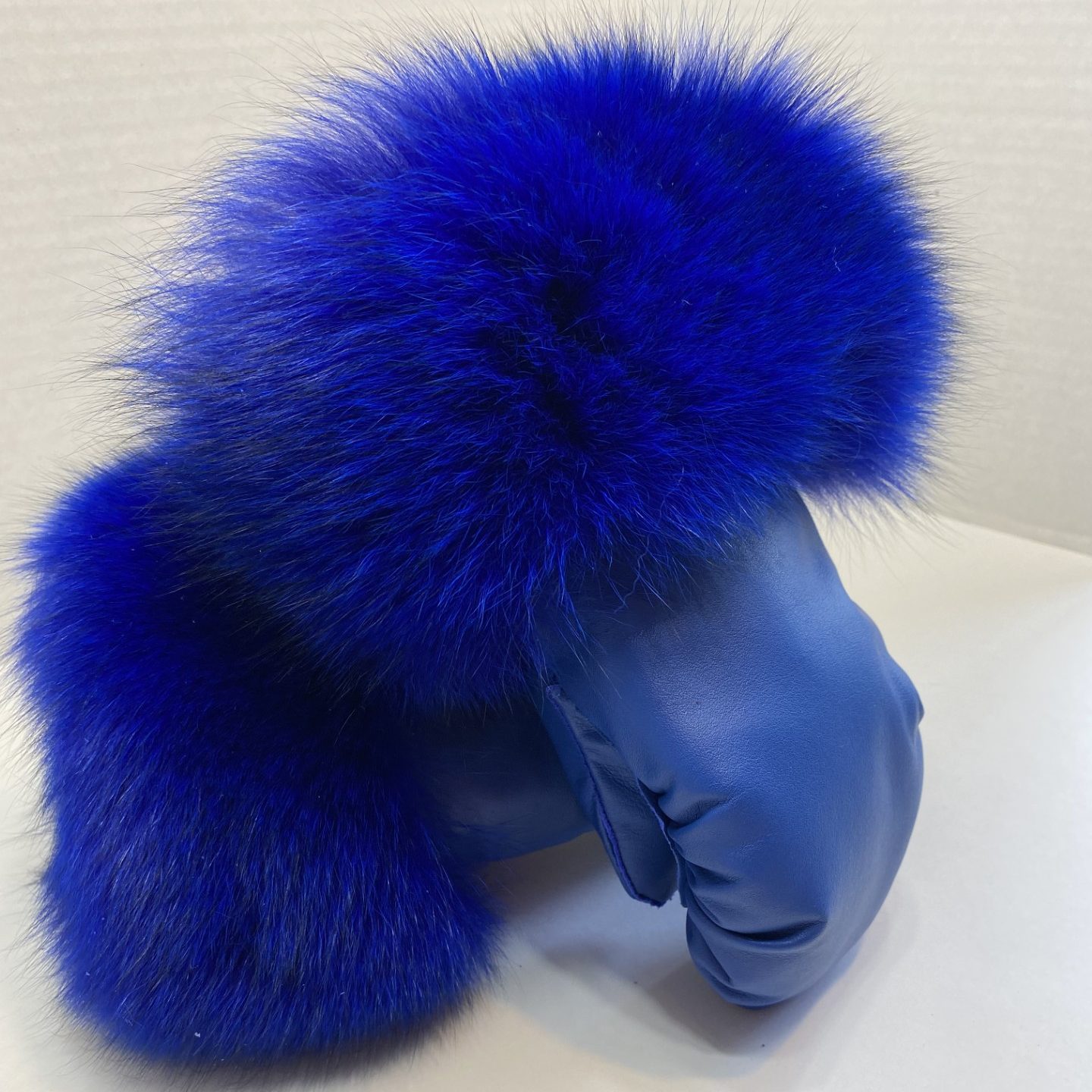 Handcrafted Curved blue leather Mitts – Custom-made to order for a perfect fit and unparalleled warmth.