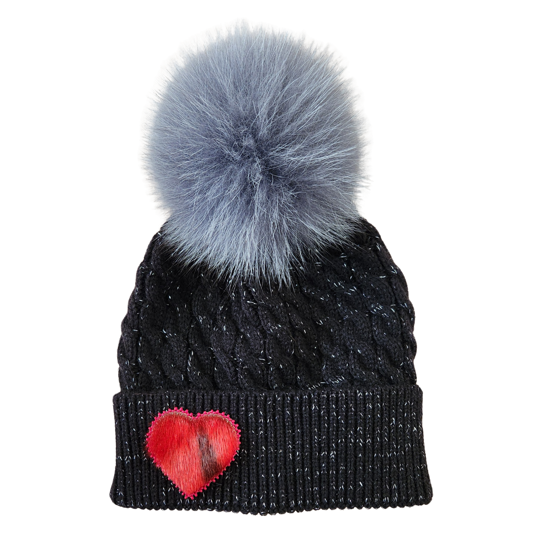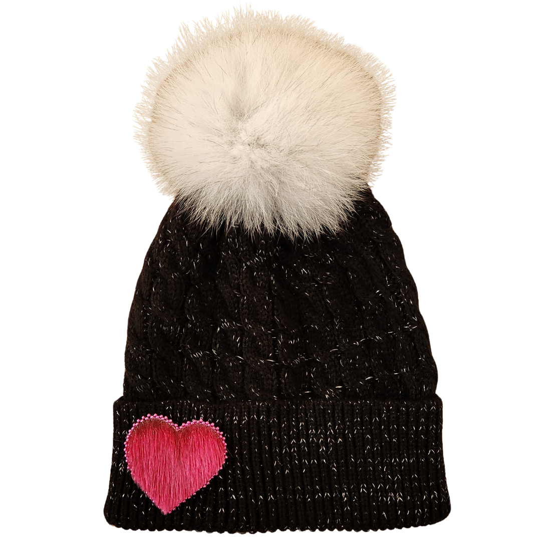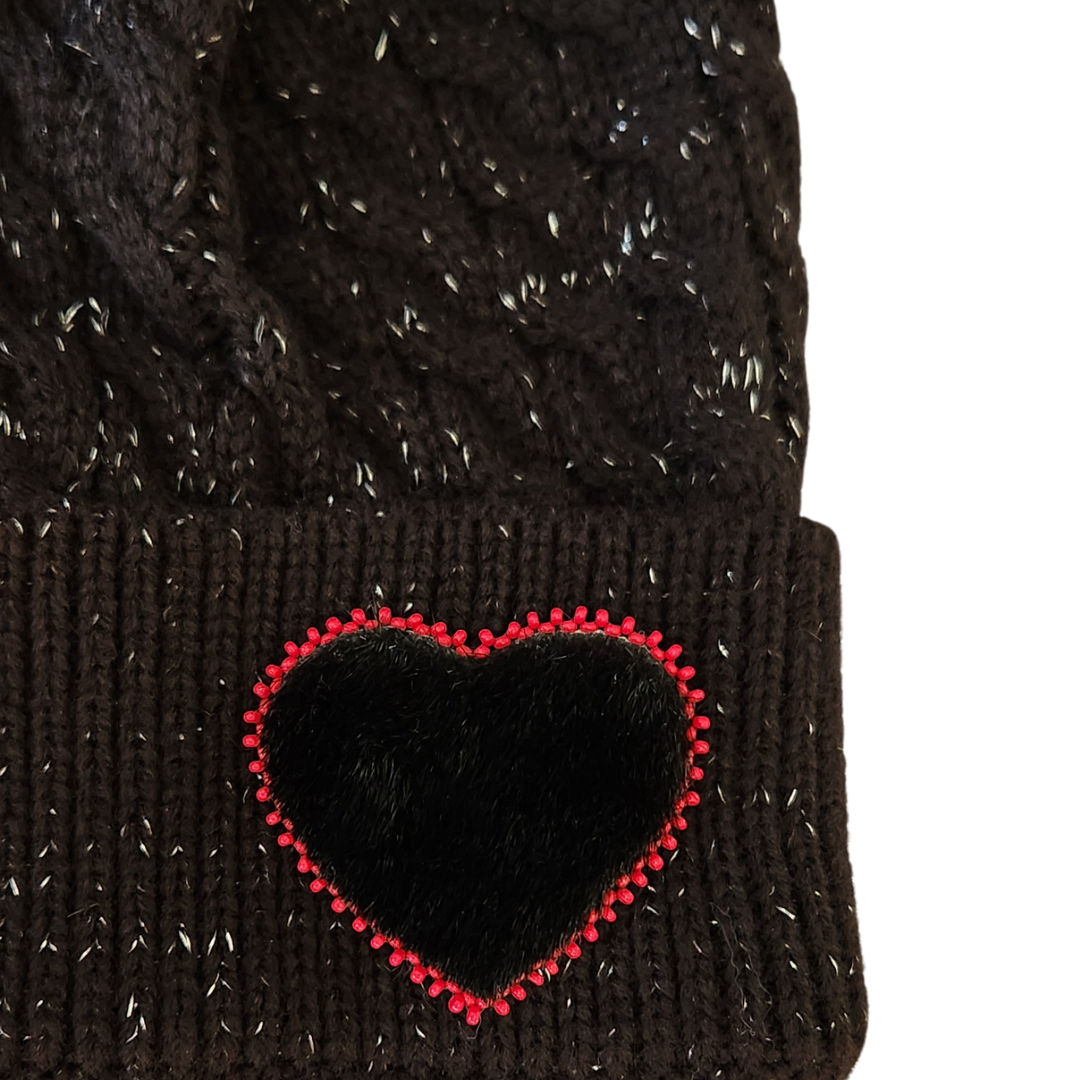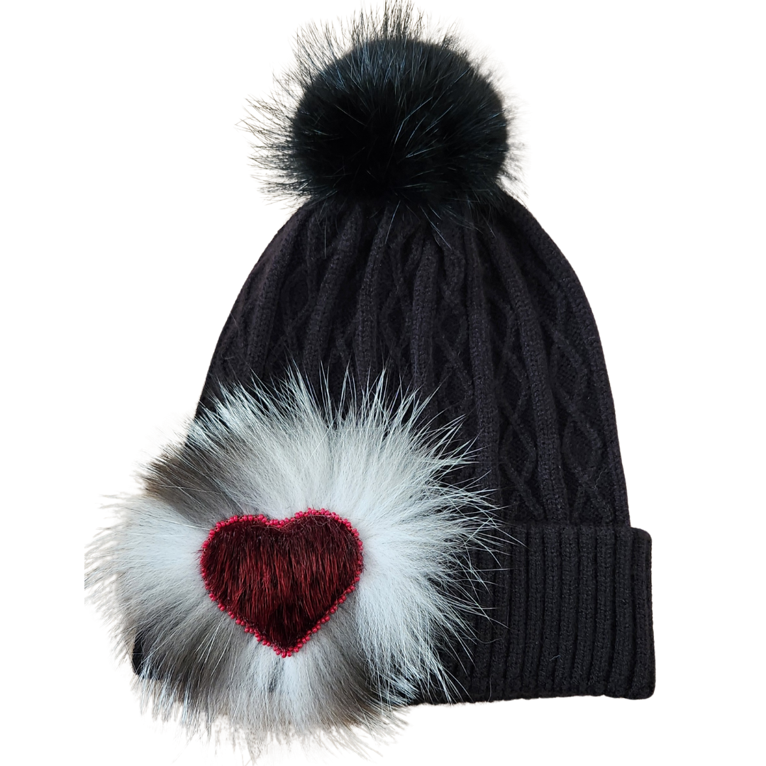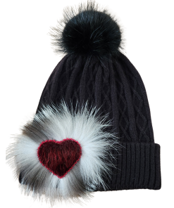- Black hat & pom, black seal heart