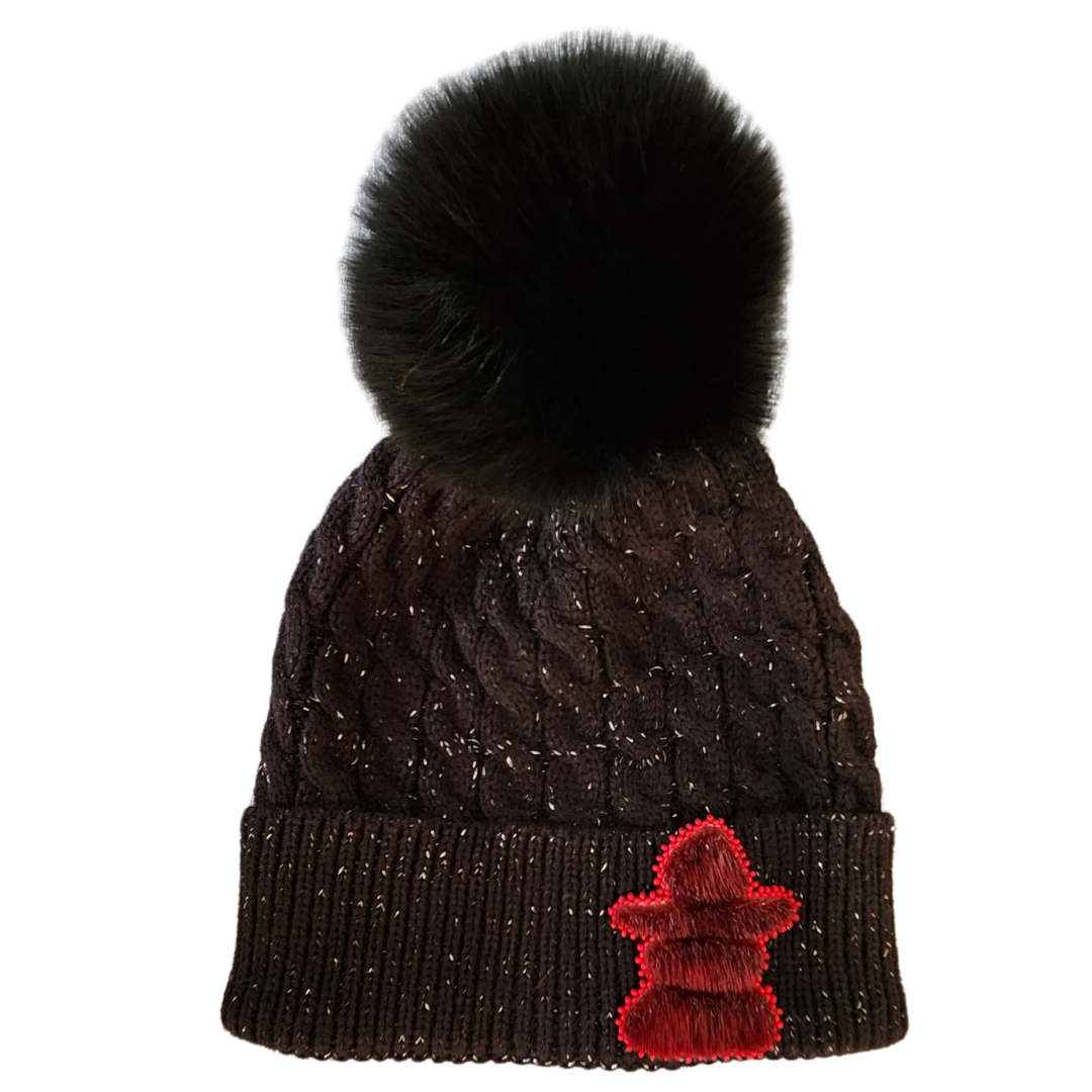 - Black hat & pom, red Inukshuk