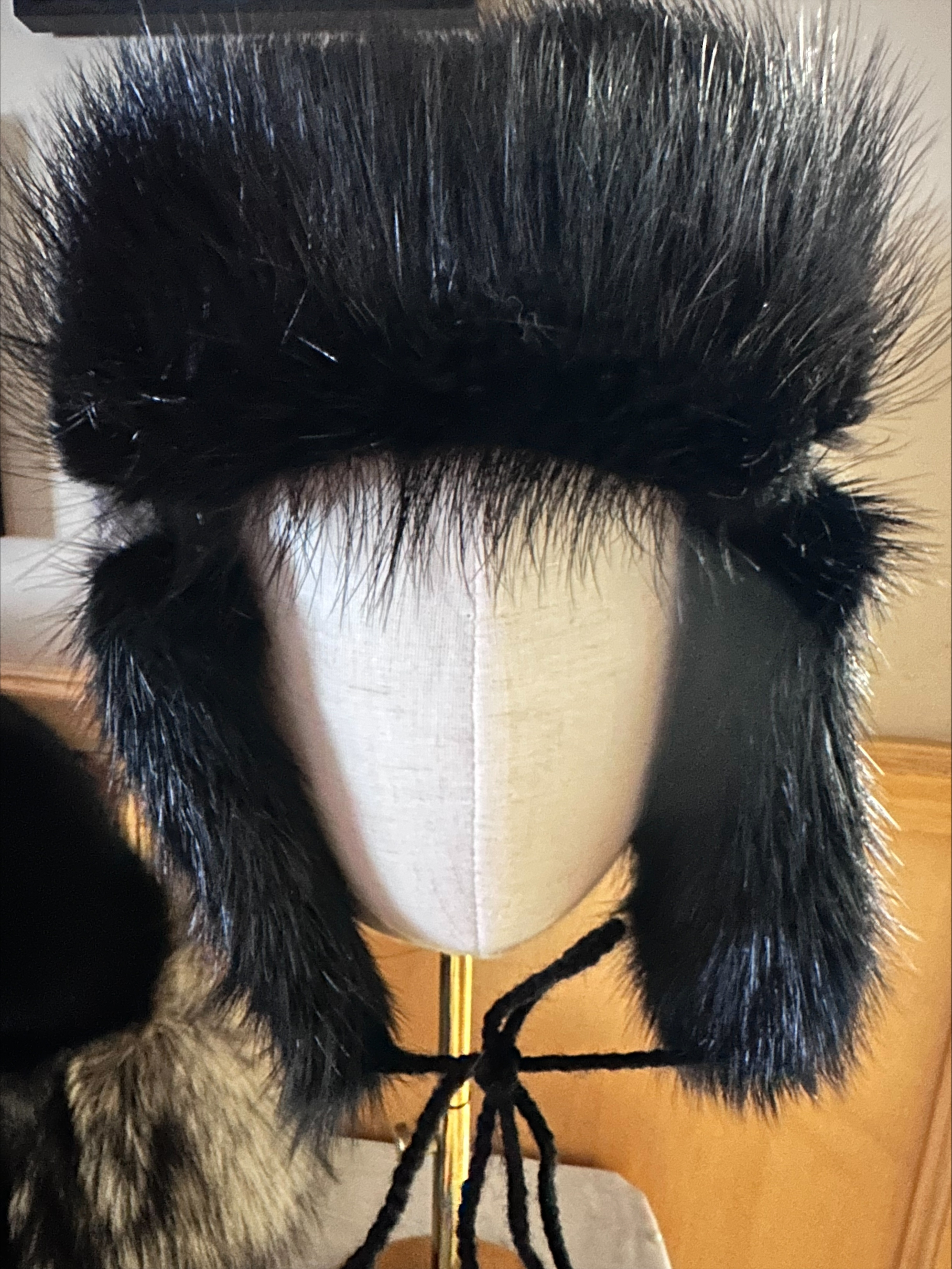 A premium trapper hat made from harp seal, dyed black beaver, and cowhide leather—designed for warmth, durability, and classic winter style.