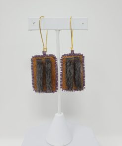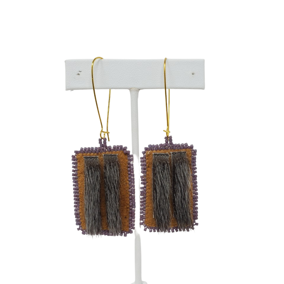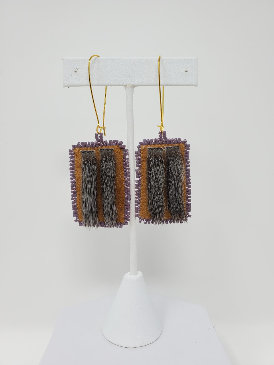 These earrings are made from home-tanned moosehide, sealskin, and purple beads, giving them a unique look that will make you stand out in the crowd.
