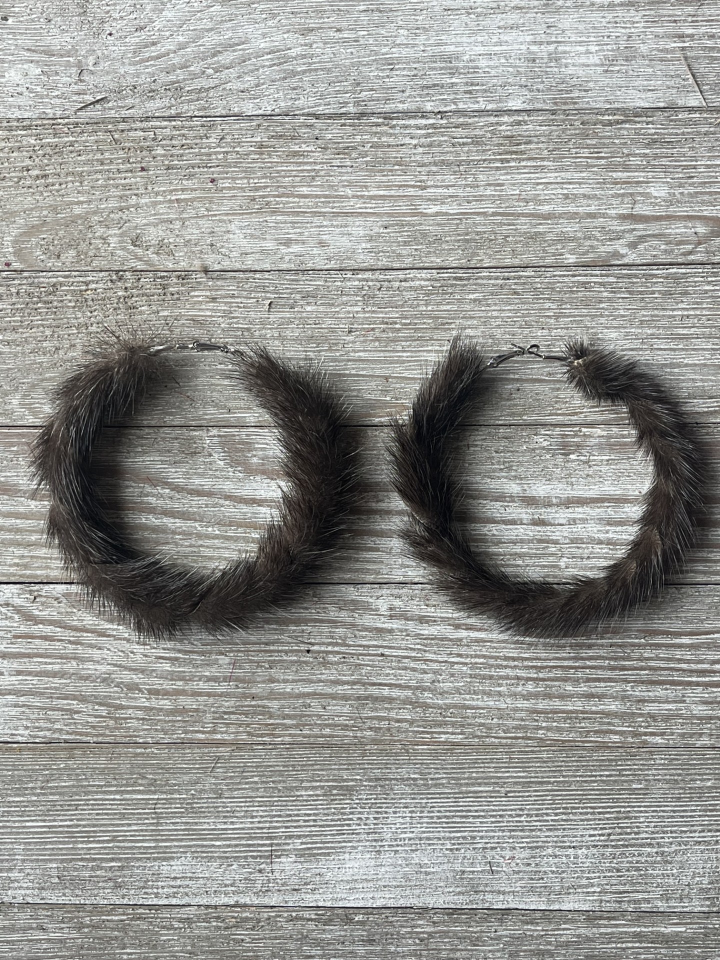 These Large Seal Hoop Earrings are a bold statement piece, with the hoop wrapped in luxurious sealskin for a unique texture. The natural material adds a touch of elegance and sophistication.