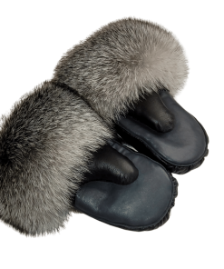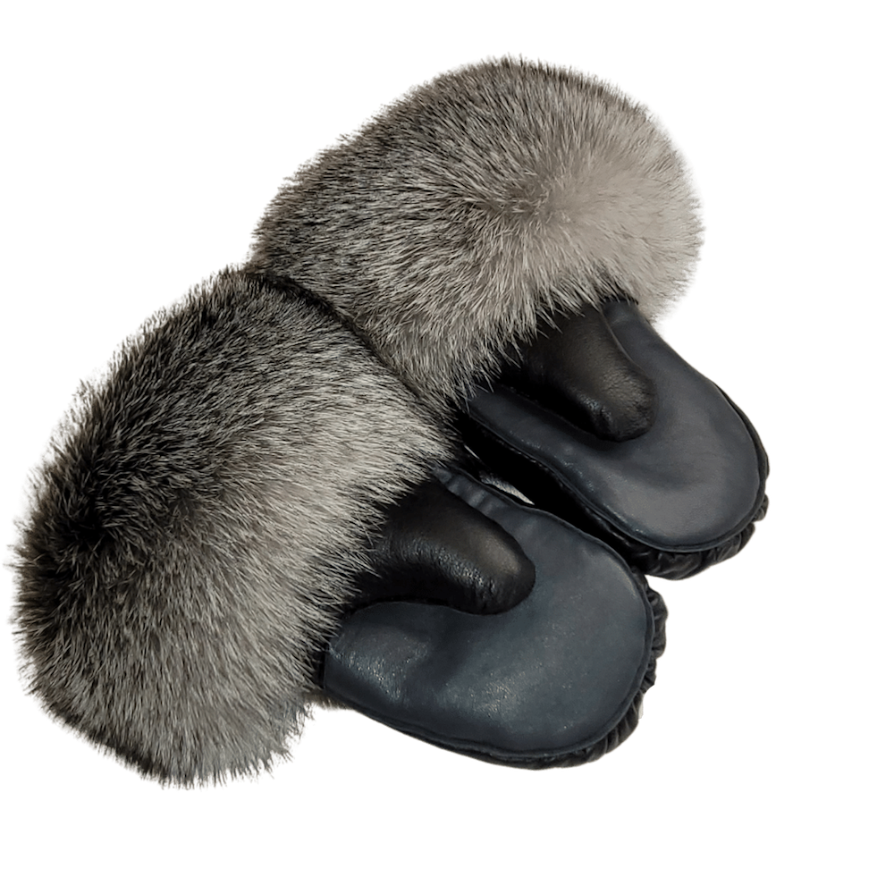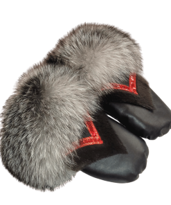 Inspired by kakiniit, traditional Inuit women’s face tattoos, these sealskin mittens feature an inlaid V design in contrasting sealskin color, trimmed in silver fox fur. In the spirit of my ancestors, these mittens are Inuit designed and hand crafted to protect you from the cold Arctic & Canadian winter while making a remarkable fashion statement. An accessible Inuit design that everyone can wear.