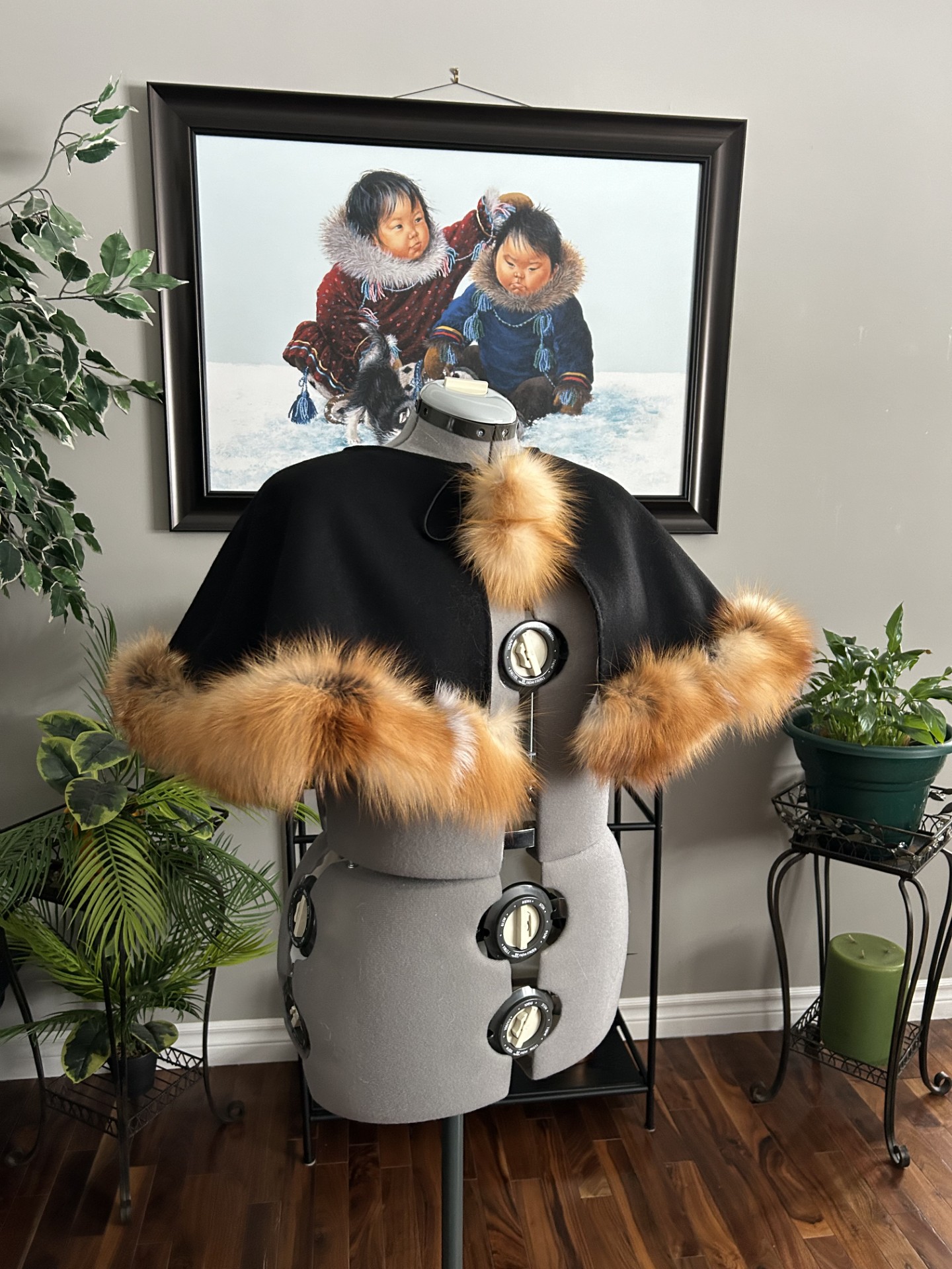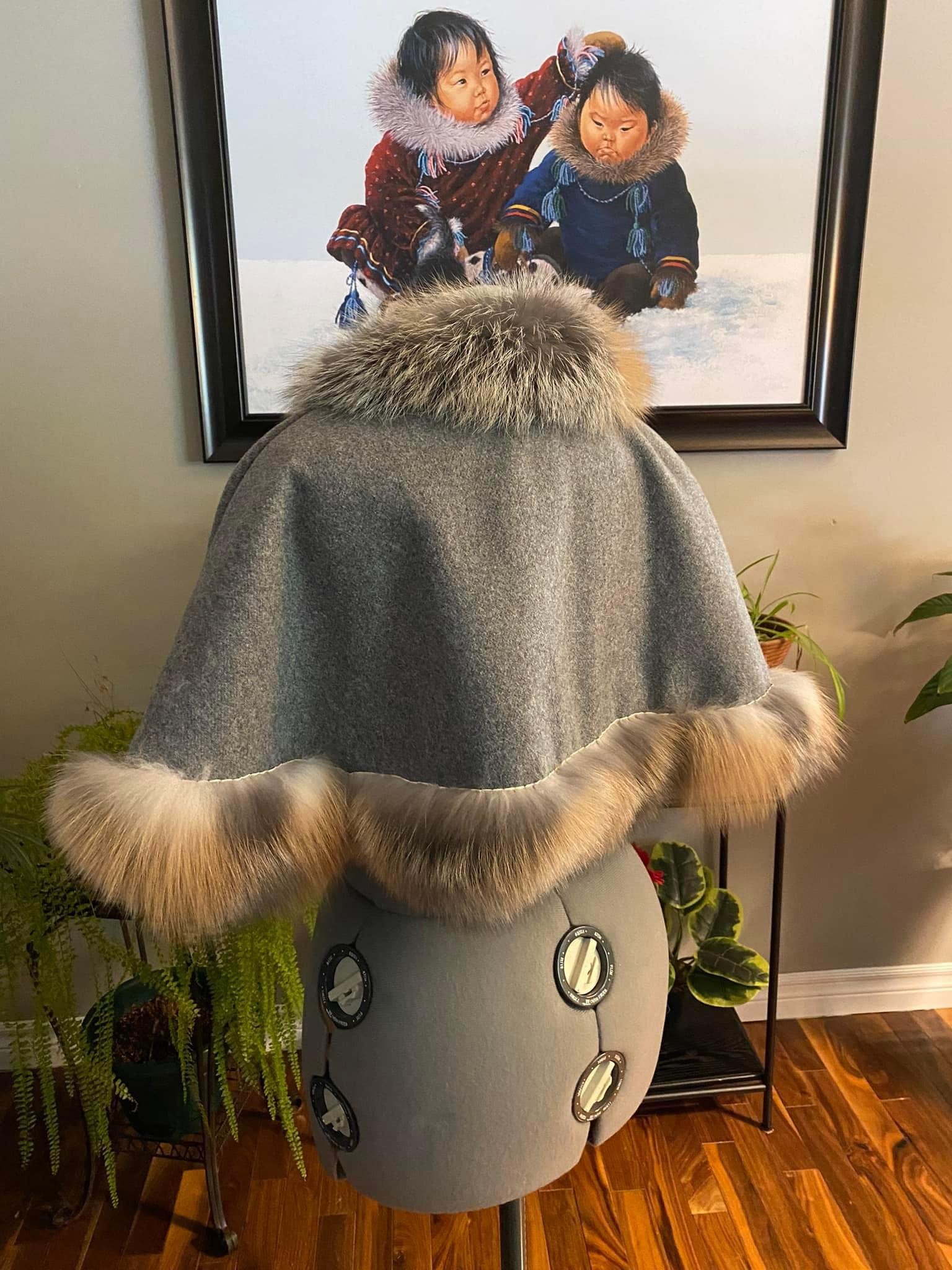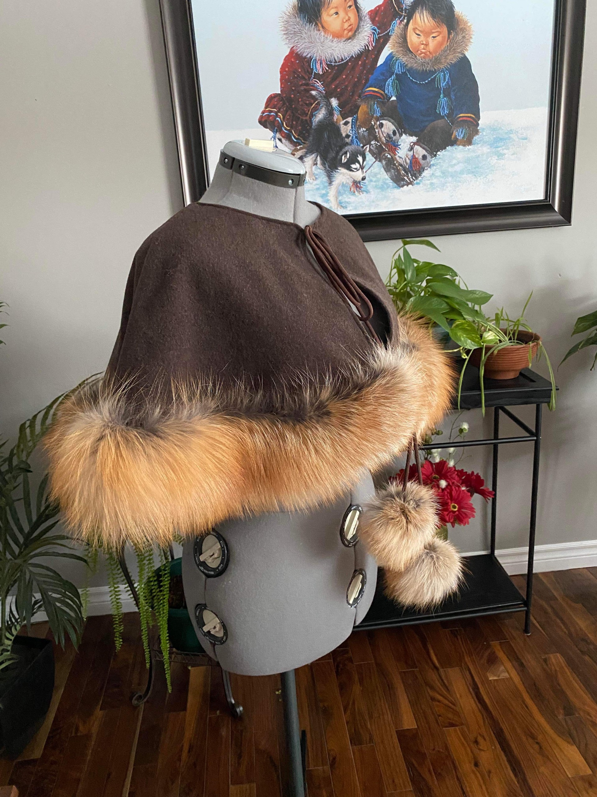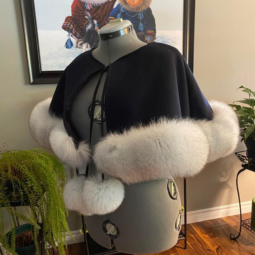Luxurious melton capes trimmed with fox fur—handcrafted and made to order for timeless elegance.
