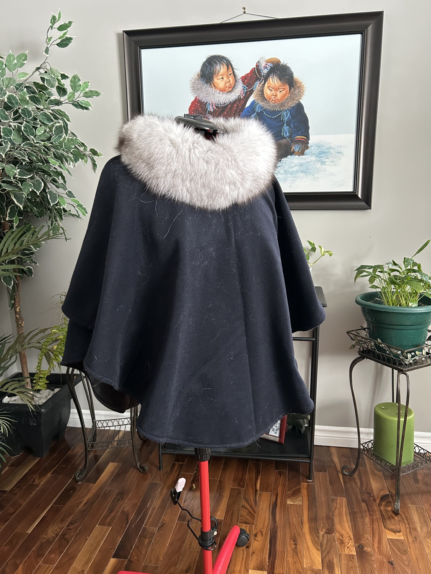 Luxurious melton wool capes lined with sumptuous fox fur—elegant, warm, and custom-made for you.