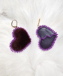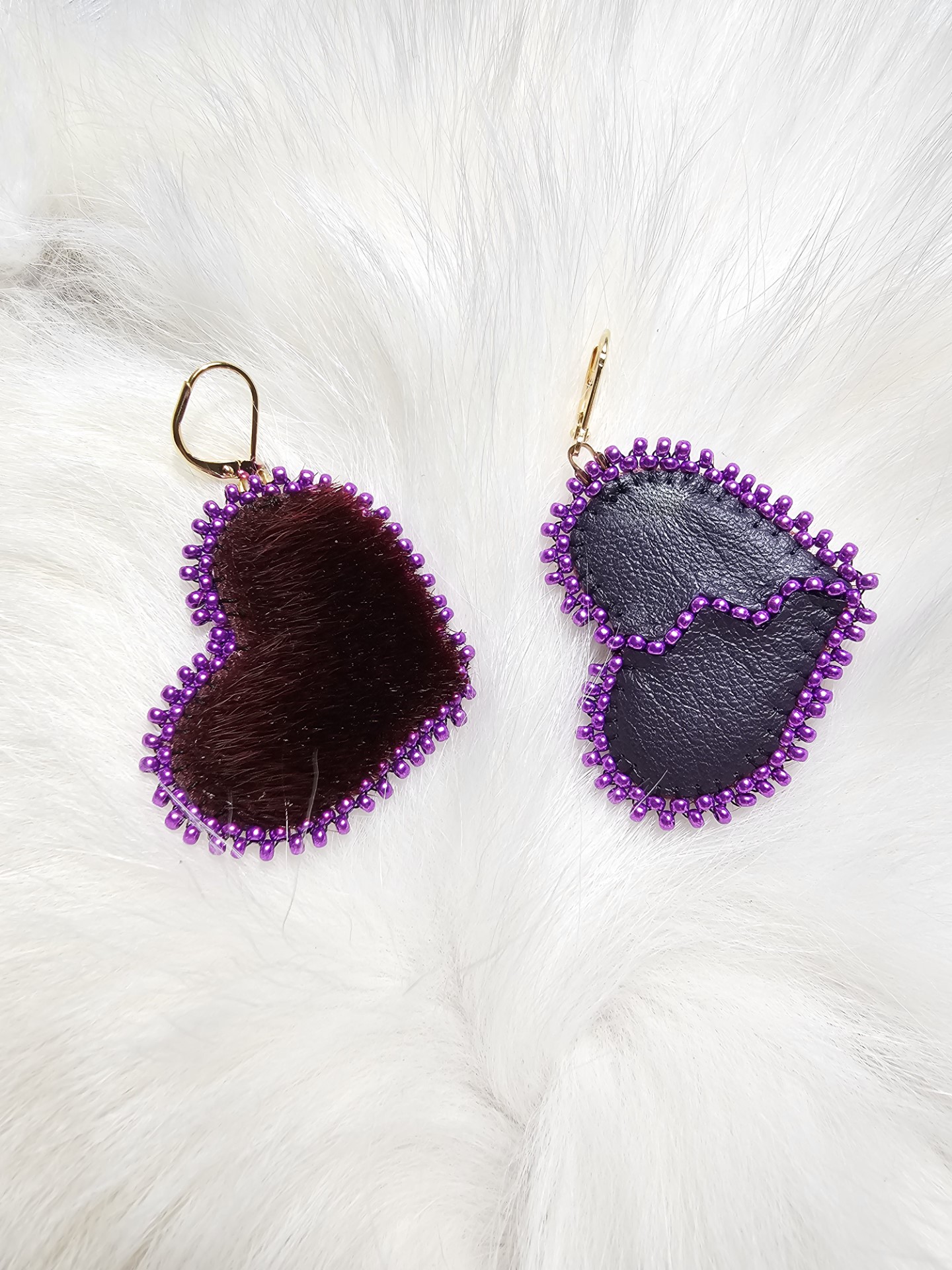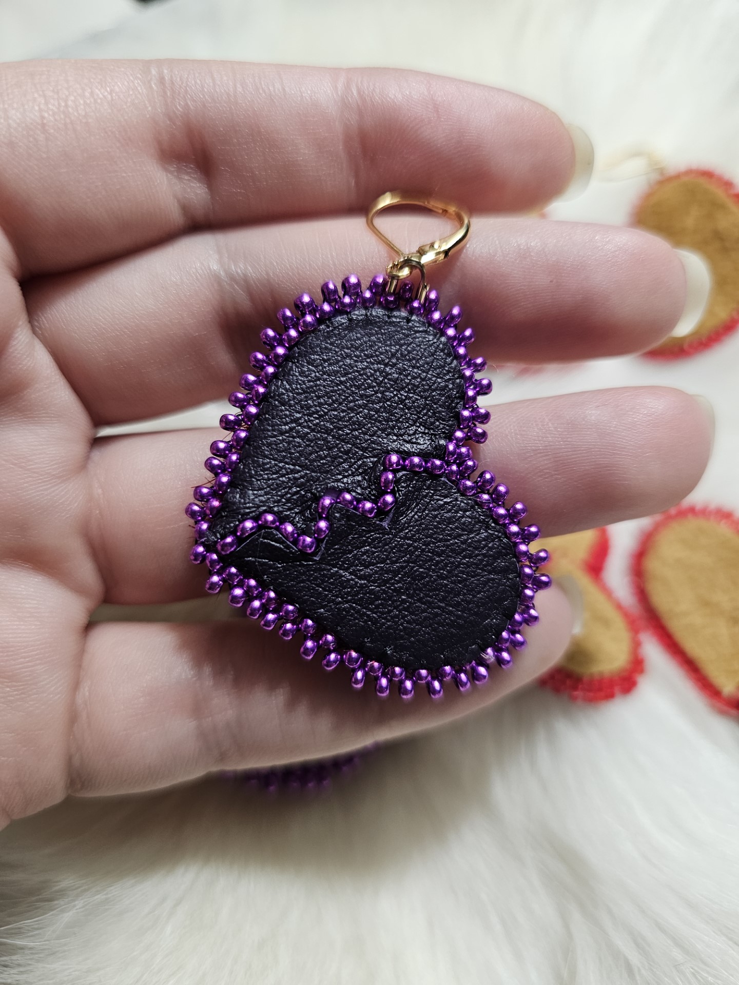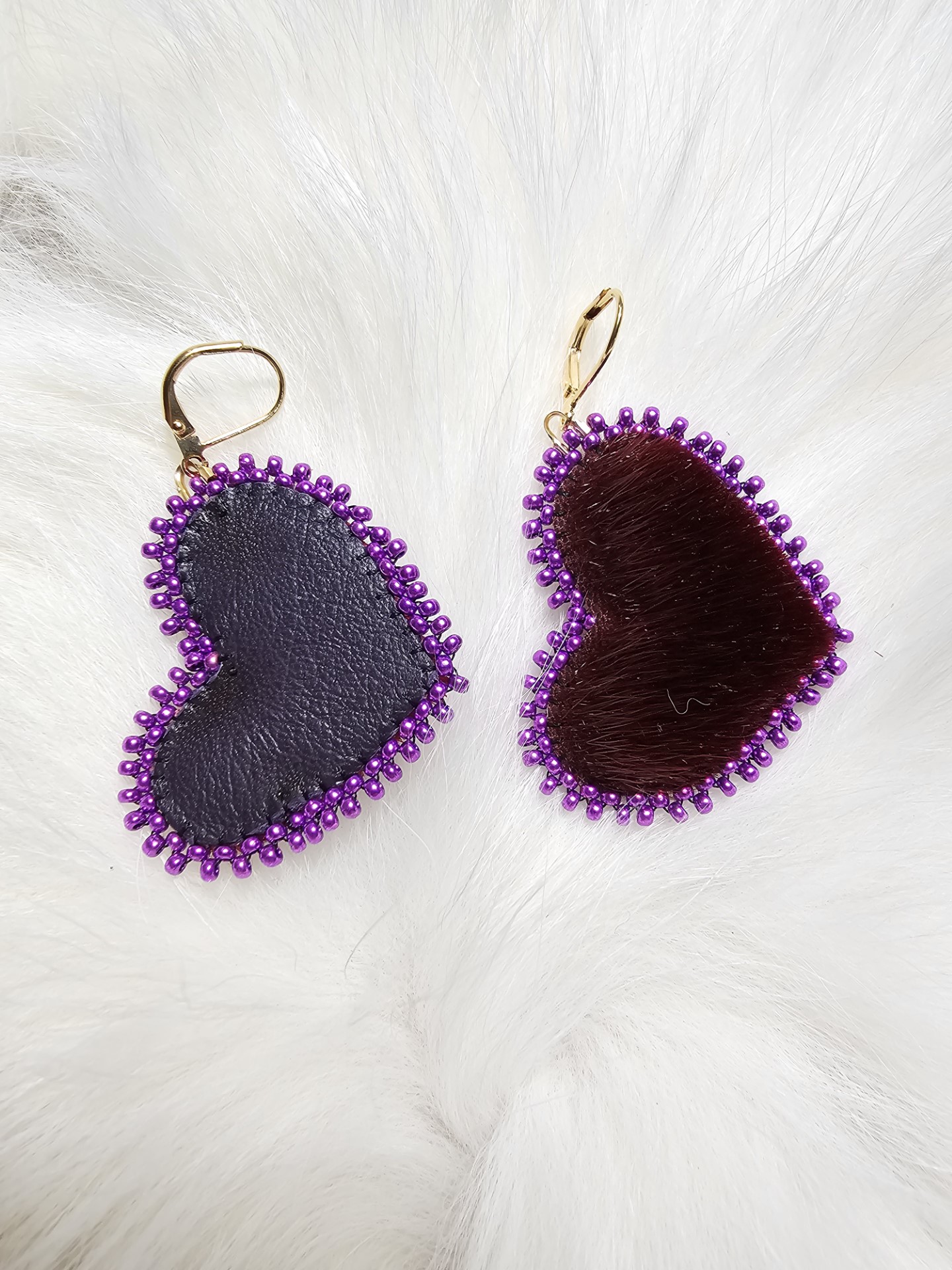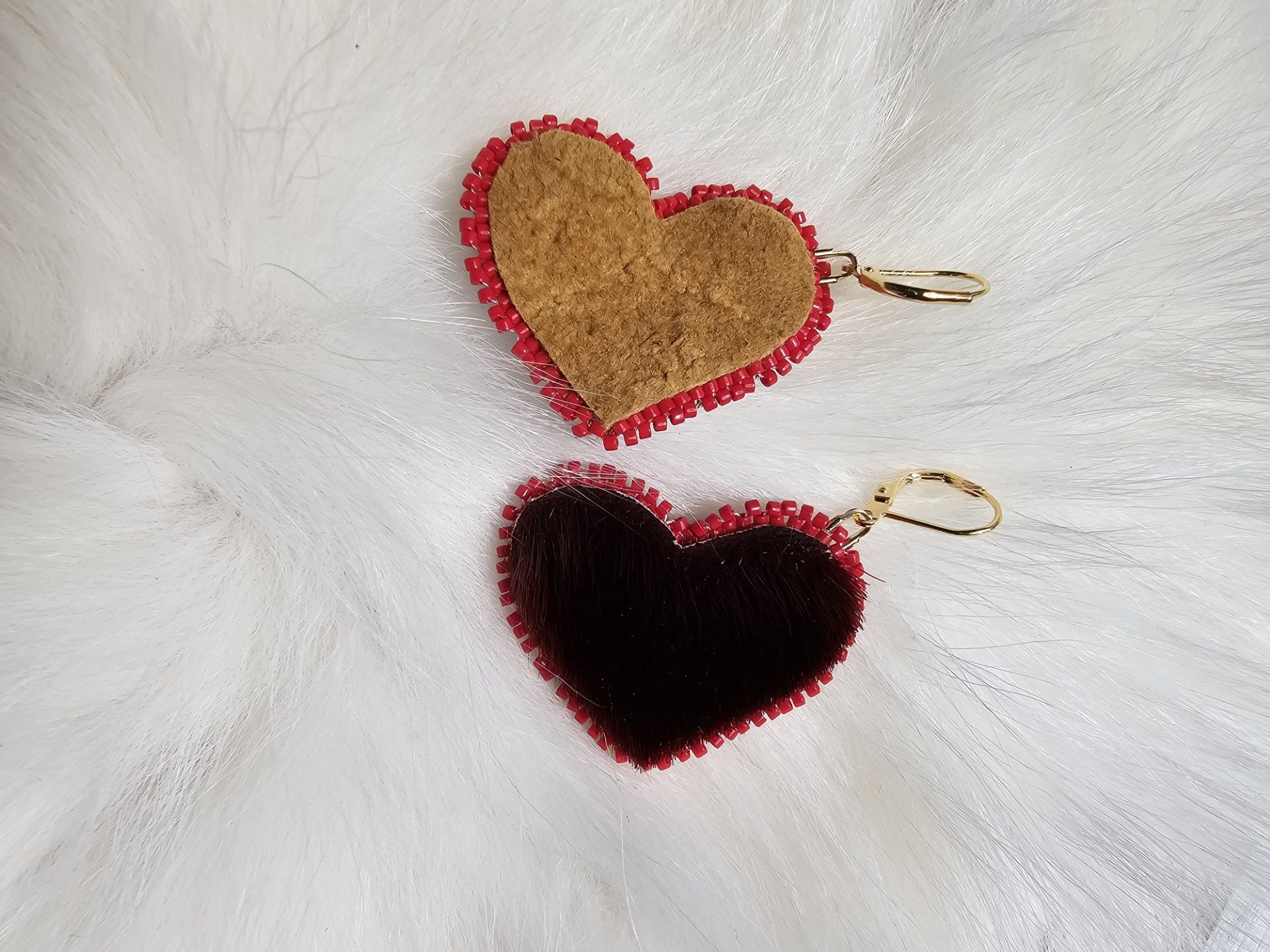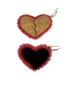 Check out Bambi’s “Mending Hearts” earrings, a blend of sealskin and moosehide symbolizing healing. Meticulously handcrafted, the intricate design tells a story of overcoming challenges and the beauty that arises from mending a broken heart.