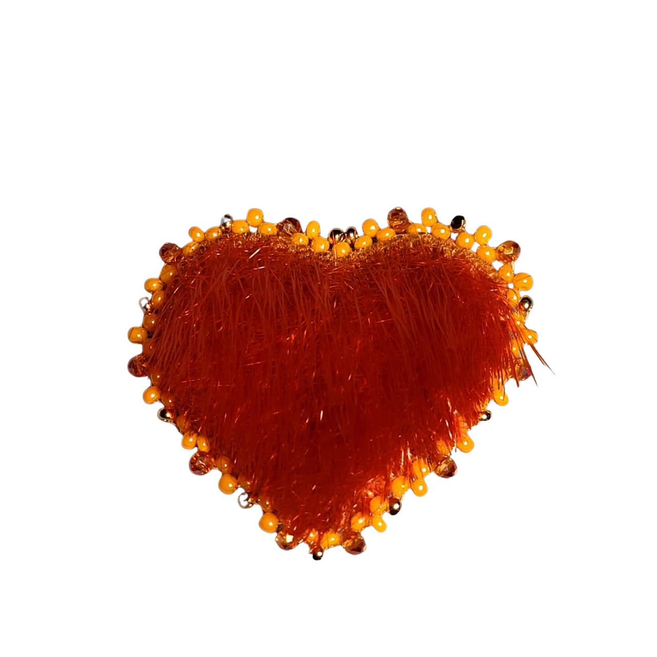 – orange ring seal– glass, gemstone & specialty bead edging– orange suede backing