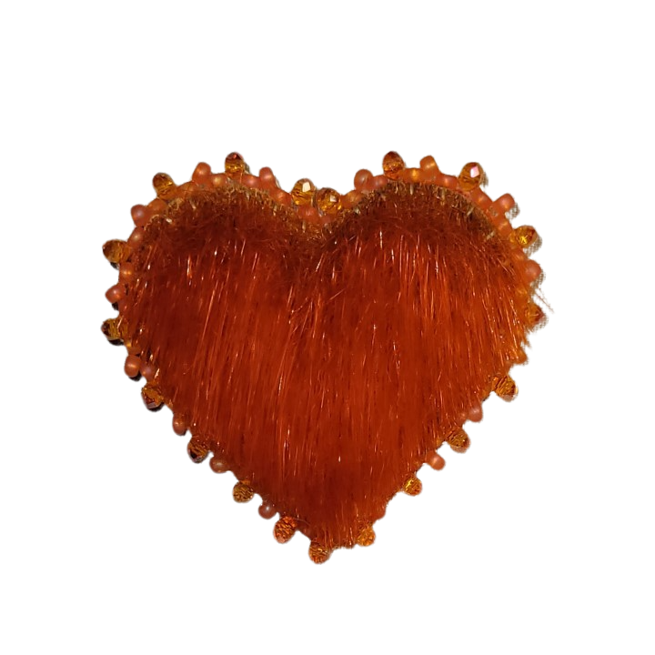 – orange ring seal– glass, gemstone & specialty bead edging– orange suede backing