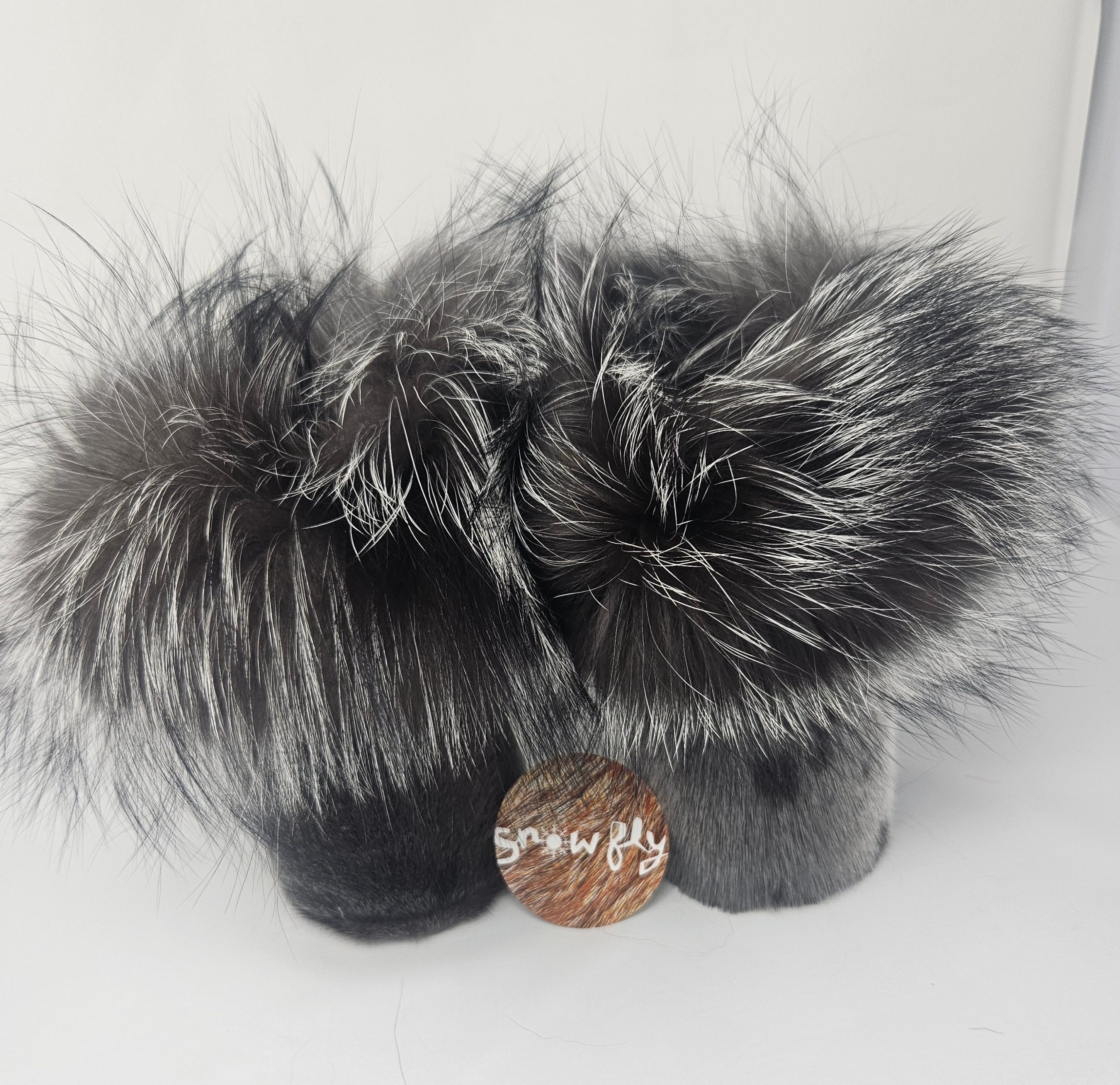 These luxurious sealskin fingerless wrist cuffs are lined with sherpa fleece and trimmed with silver fox fur, bringing warmth and comfort during colder weather.