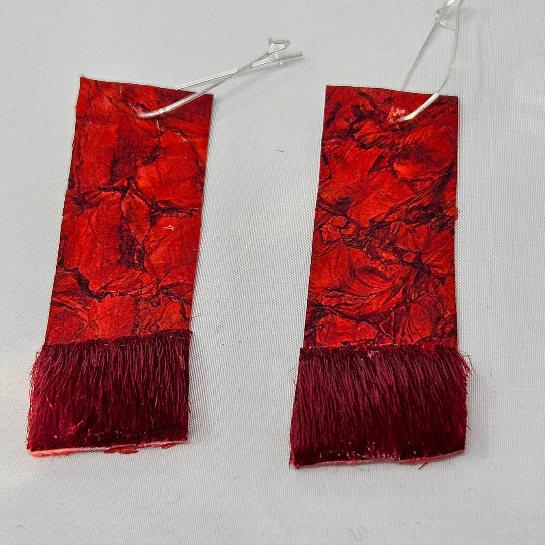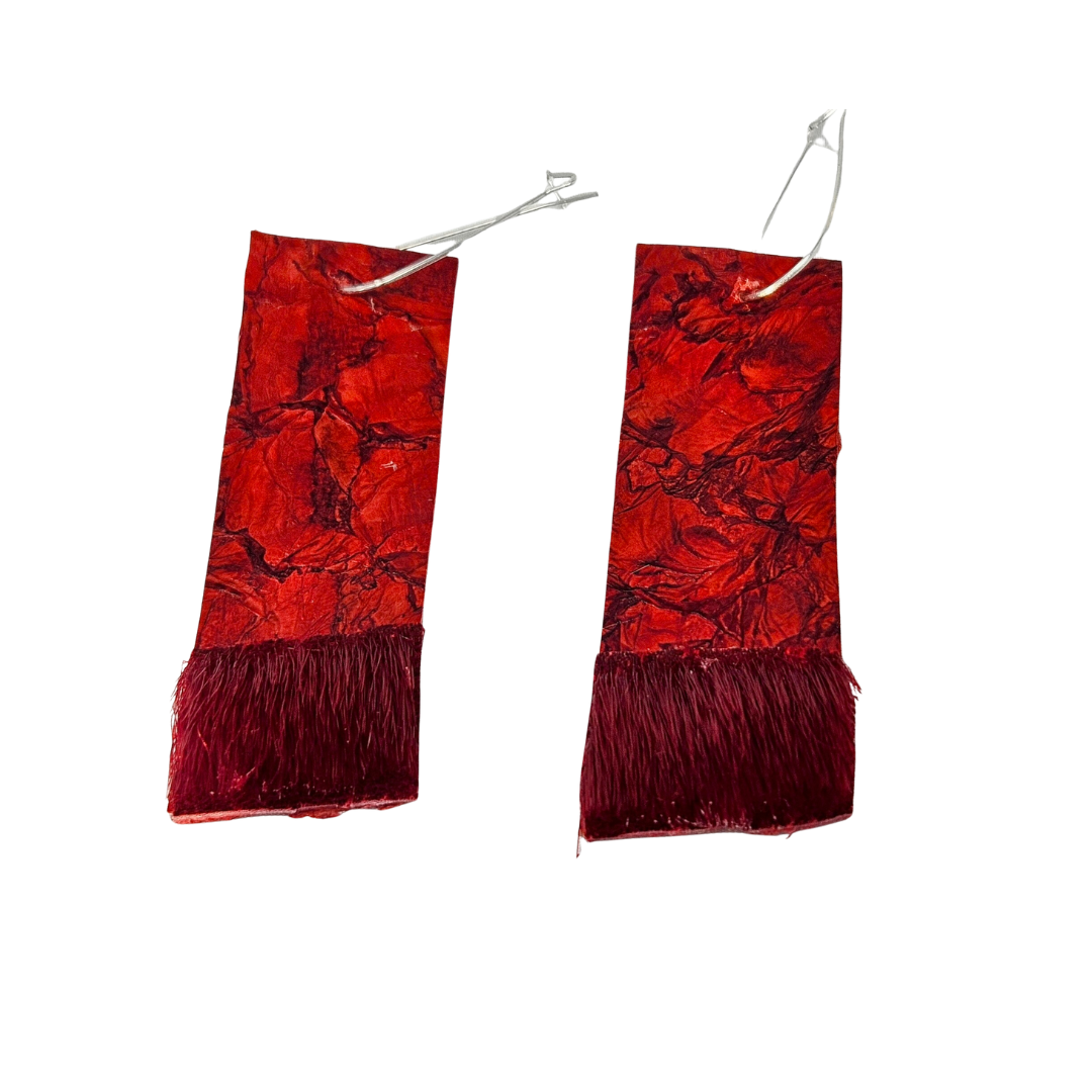 Introducing Cheryl’s Gorgeous Red Fishskin Earrings trimmed with Sealskin. These stylish earrings feature vibrant red fishskin elegantly trimmed with Natural Sealskin Dyed Red. With a length of 3 inches and a width of 1 inch, they’re a captivating accessory that seamlessly blends traditional craftsmanship with eye-catching colour.
