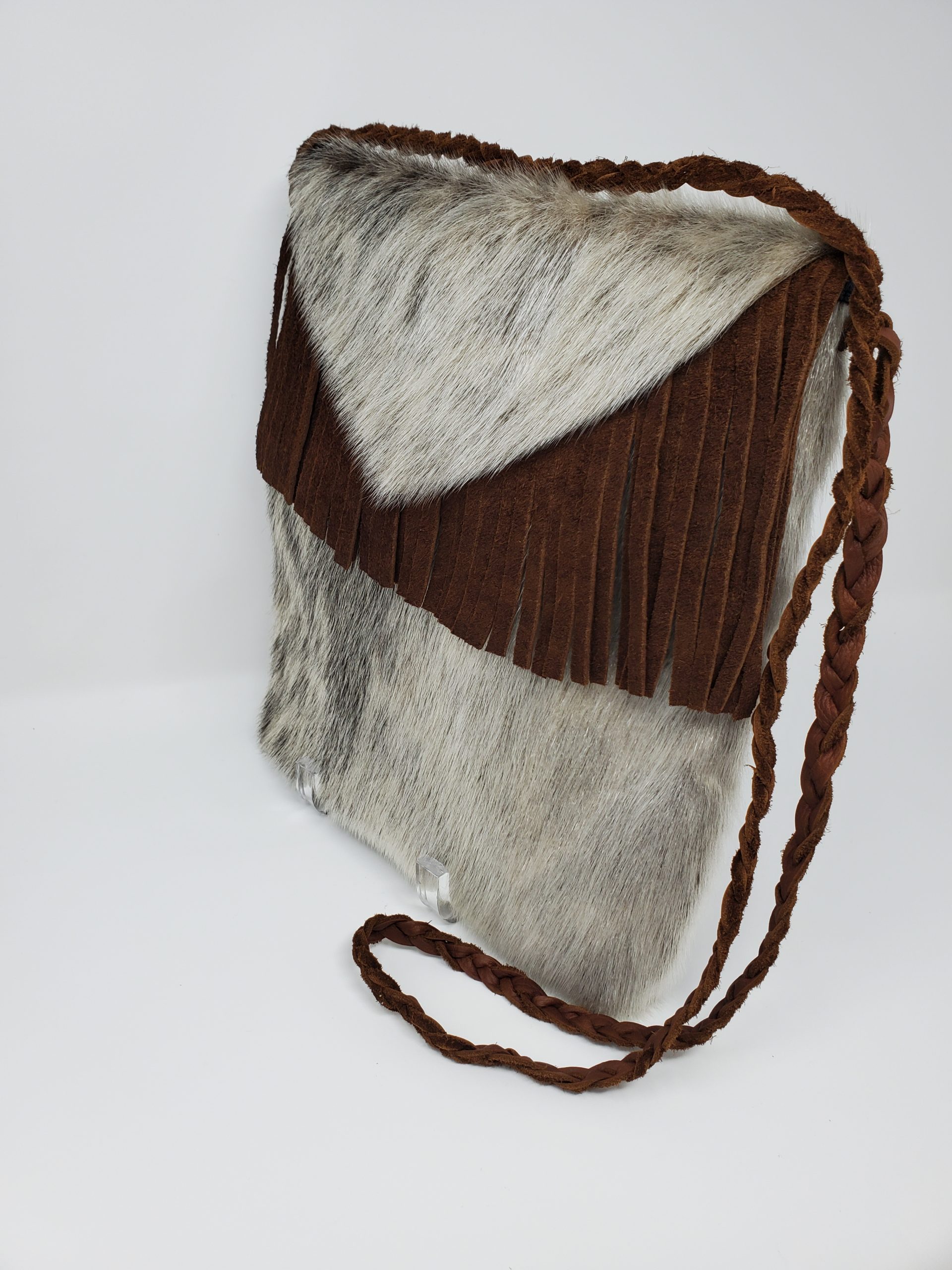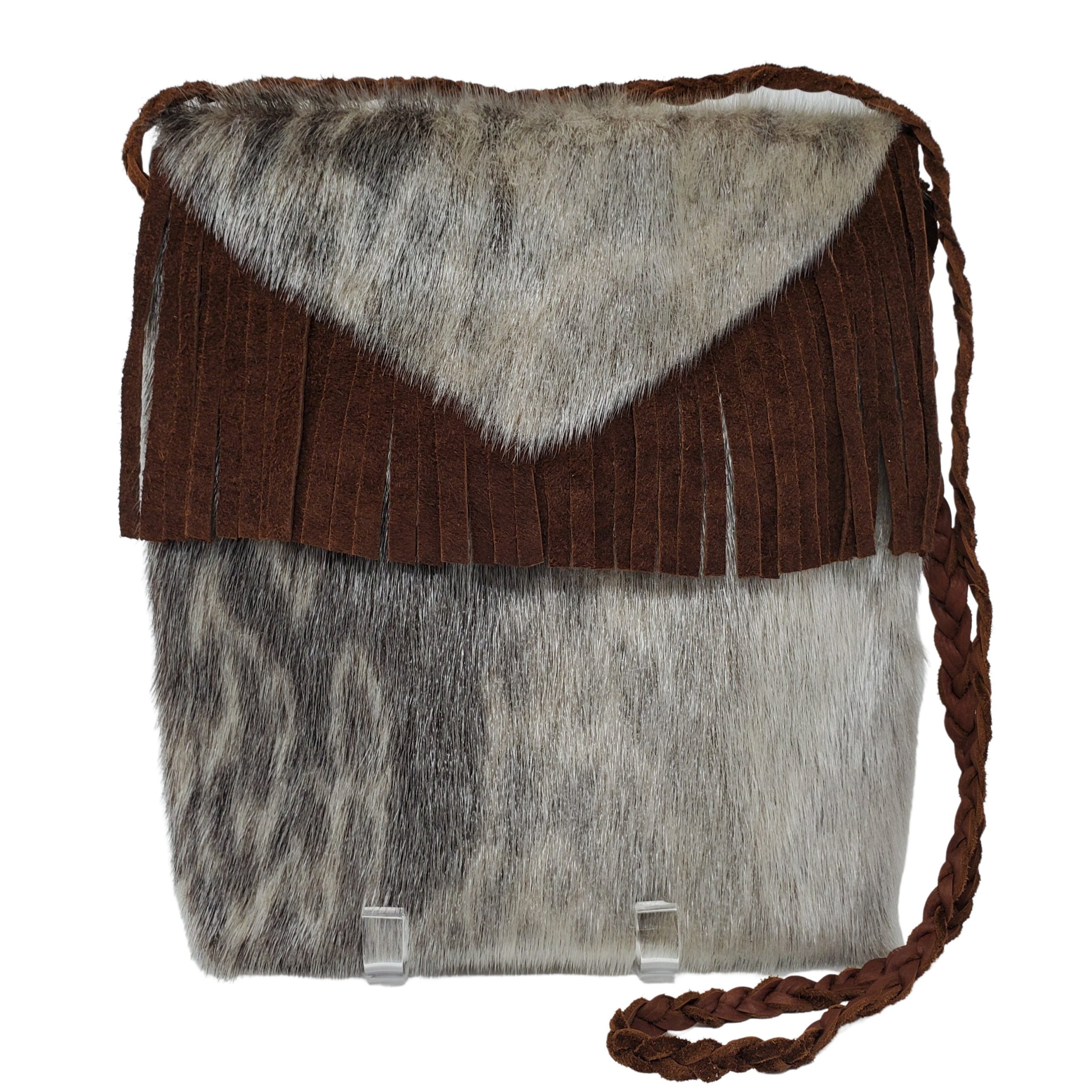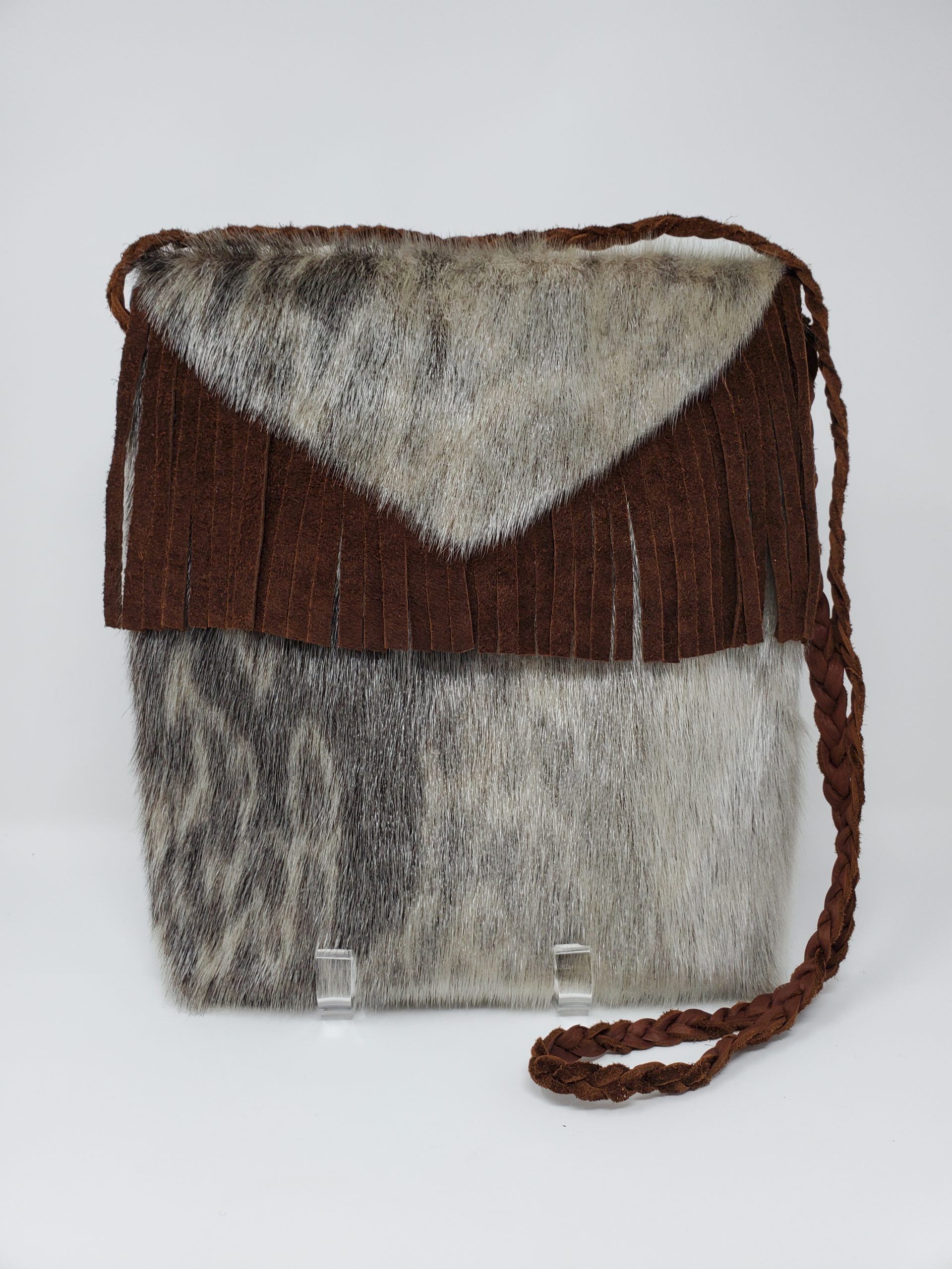 This Ring Seal Skin Fringe Purse is the perfect accessory for any woman with a bold sense of style. This stunning purse is made of genuine ring seal skin leather, giving it a rich and supple feel in your hand. It features bison leather fringe detailing from the top to the middle, which adds an extra flair that will catch everyone’s eye. The interior of this purse is roomy enough to hold all of your everyday essentials.