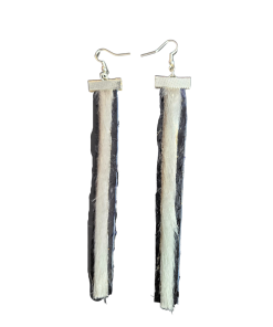 Introducing our Sea Earrings: Seal and Fish Skin – a harmonious blend of nature’s beauty. Measuring 3/4″ x 5”, these stunning earrings feature exquisite materials, including a natural sealskin paired with rich black dyed salmon fish skin, elegantly finished with silver findings.