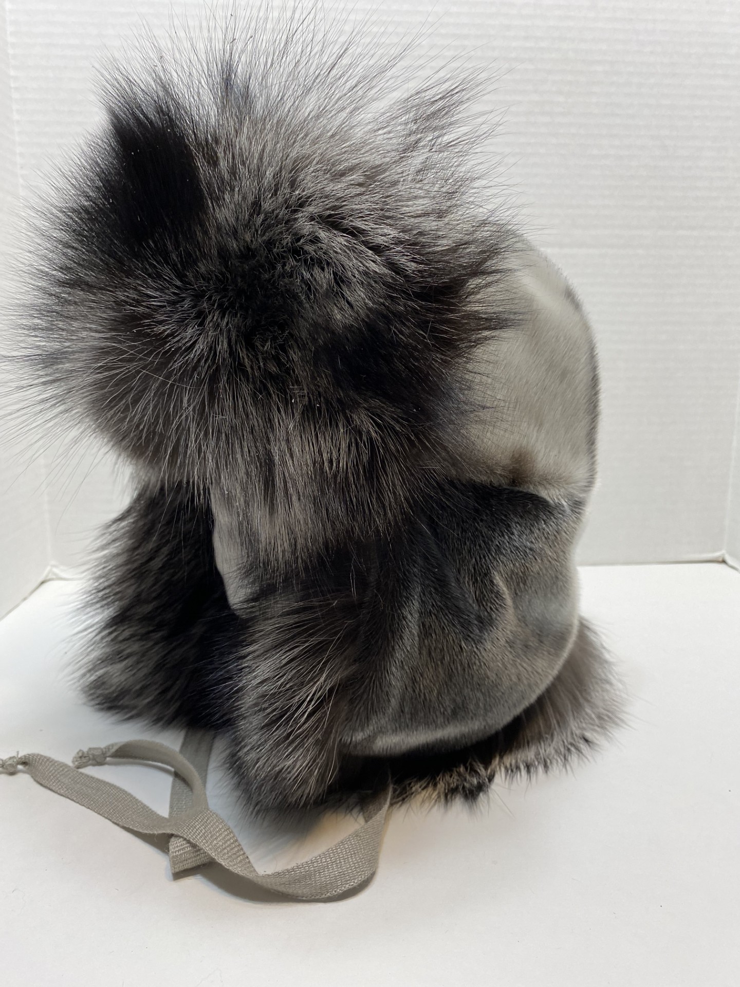 Handcrafted sealskin and silver fox trappers style hat, made to order for a unique and luxurious touch. Perfectly designed to keep you warm and stylish!