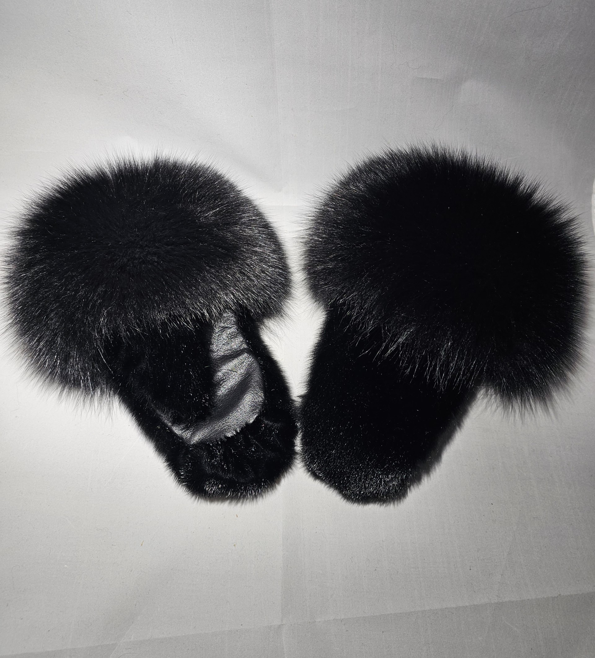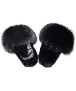 Crafted with black sealskin and adorned with black fox trim, these mittens exude elegance and sophistication. The palms are made from black leather, offering a supple and durable grip. Double-lined with fleece and Radiantex, these mittens provide exceptional warmth and comfort. Designed in a women’s size medium, these mittens are the perfect accessory to keep you stylish and cozy in colder climates.