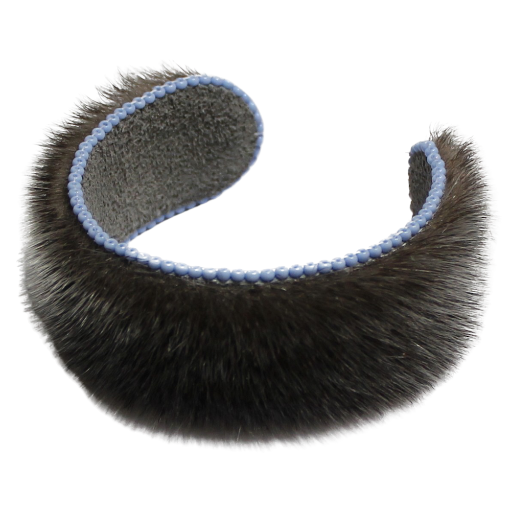 This beautiful, handcrafted Sealskin cuff is created with the utmost love and care by Inuk artist. Made with Natural Sealskin from our waters and embellished with Periwinkle Czech seed beads, with moosehide backing. The titanium base cuff is durable and meant to last. Made with fine materials only.